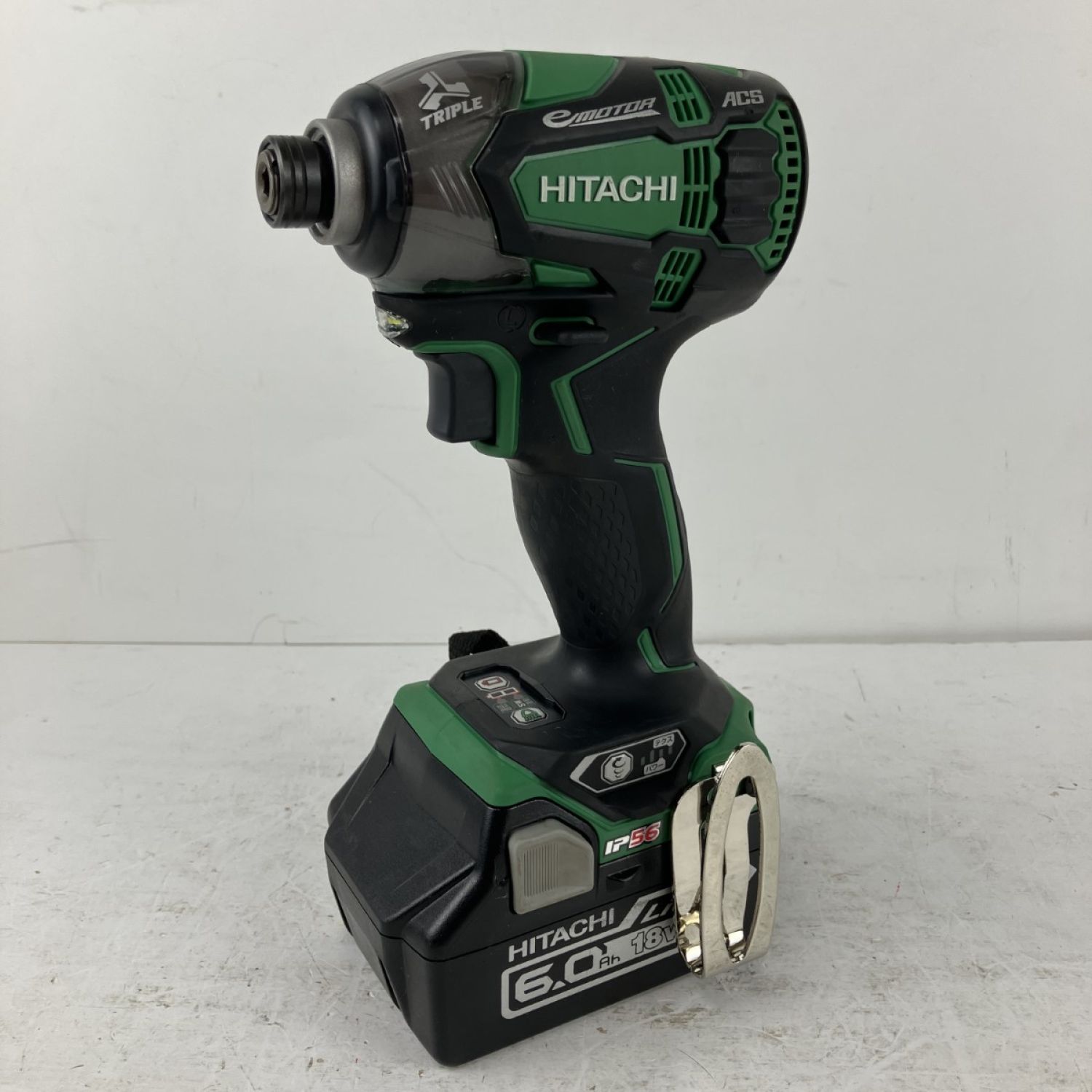 【商品名】中古 HITACHI 日立 18v インパクトドライバ バッテリーx2 充電器 ケース付 WH18DDL2 グリーン Bランク