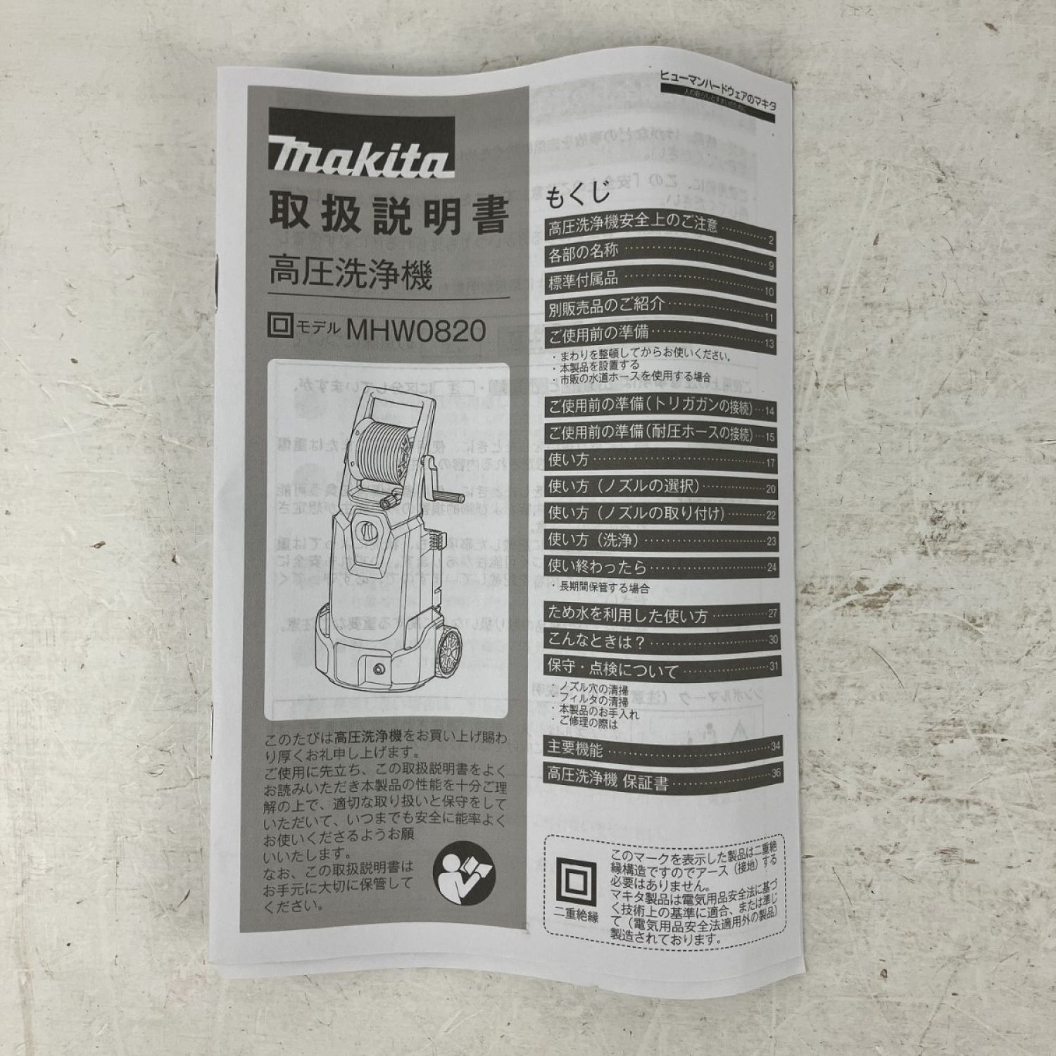 ЗЗ MAKITA マキタ 100v 高圧洗浄機 ガン ホース ノズル ジョイント 取説付 MHW0820 ブルー
