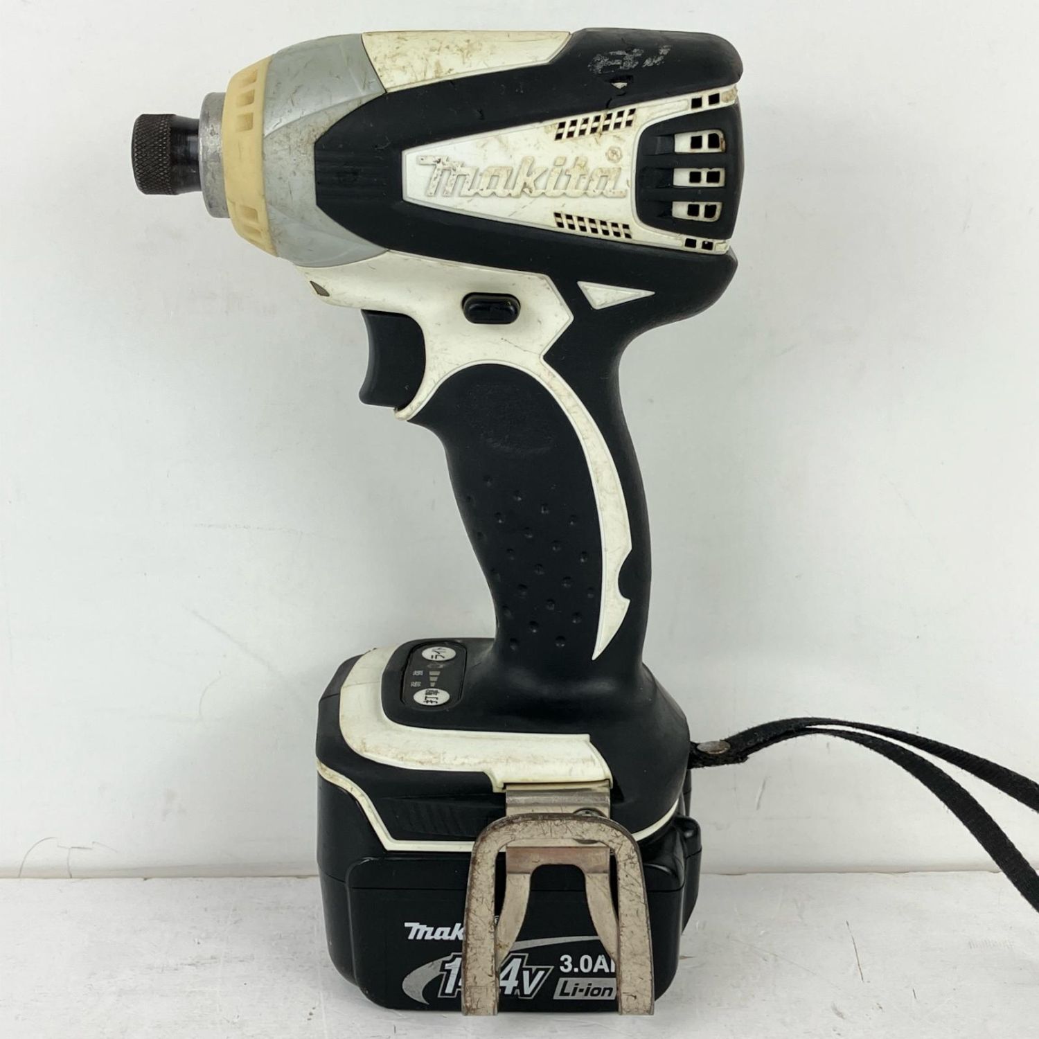 【商品名】中古 MAKITA マキタ 14.4v 充電式インパクトドライバ 充電器 バッテリー×2 ケース付 TD132D ホワイトxブラック Cランク