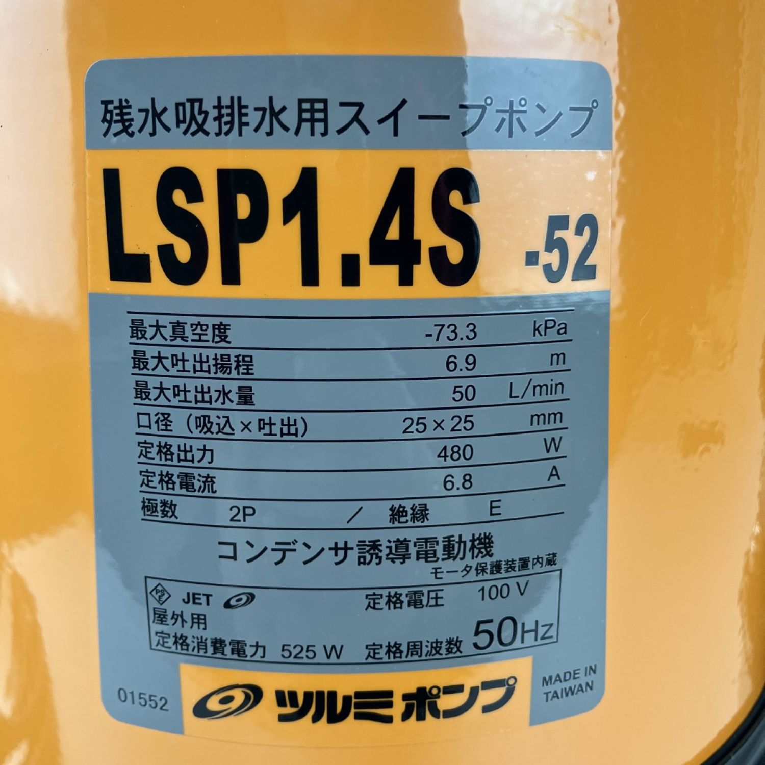 ЗЗ TSURUMI PUMP ツルミポンプ 100v 25mm 水中ポンプ ホース付 LSP1.4S-52 オレンジ
