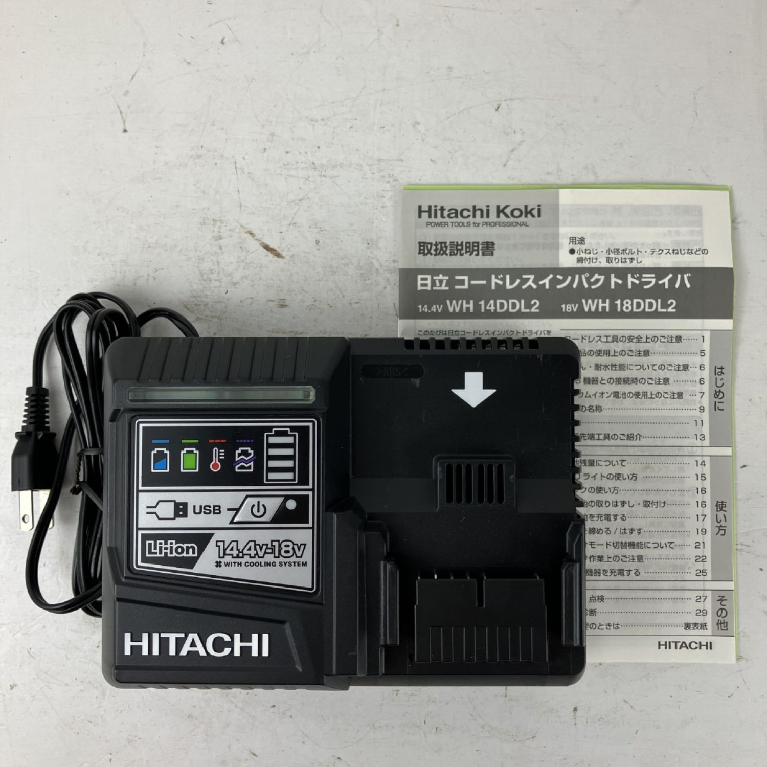 ЗЗ HITACHI 日立 18v インパクトドライバ バッテリーx2 充電器 ケース付 WH18DDL2 グリーン×ブラック