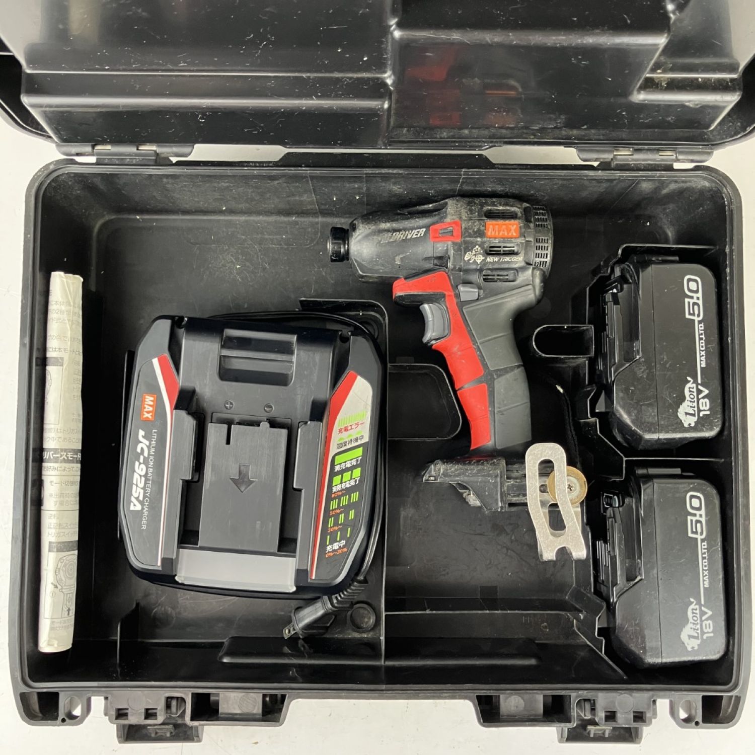 ЗЗ MAX マックス 18v インパクトドライバ バッテリーx2 充電器 ケース付 PJ-SD102-B2C ブラック×レッド