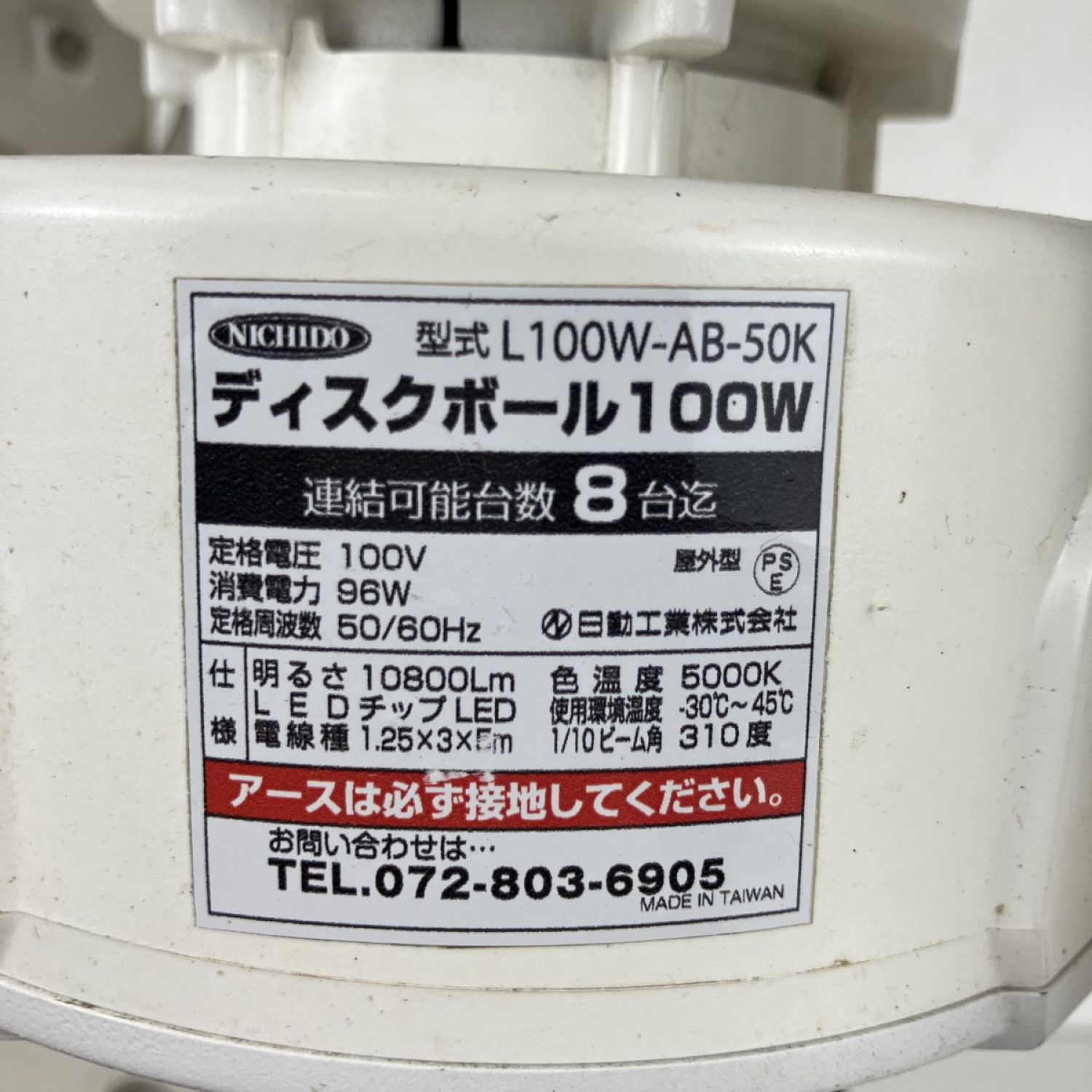 【商品名】中古 NICHIDO 日動工業 (3) 100v 10800Lm LEDライト ディスクボール L100W-AB-50K ホワイト Cランク