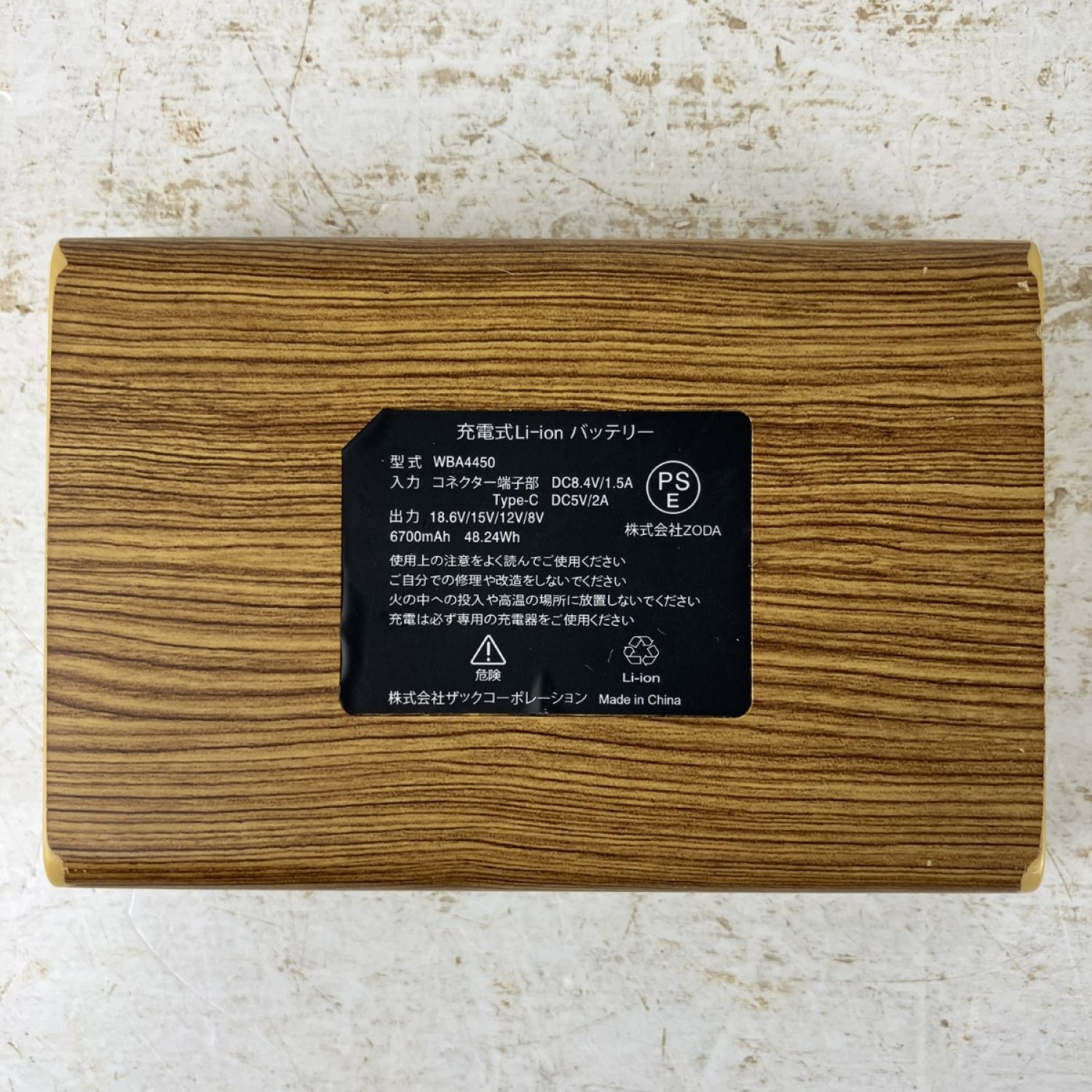 【商品名】中古 Windcore 18.6v 6700mAh バッテリー・ファンセット WZ4450/WZ4550 ウッド調 Cランク