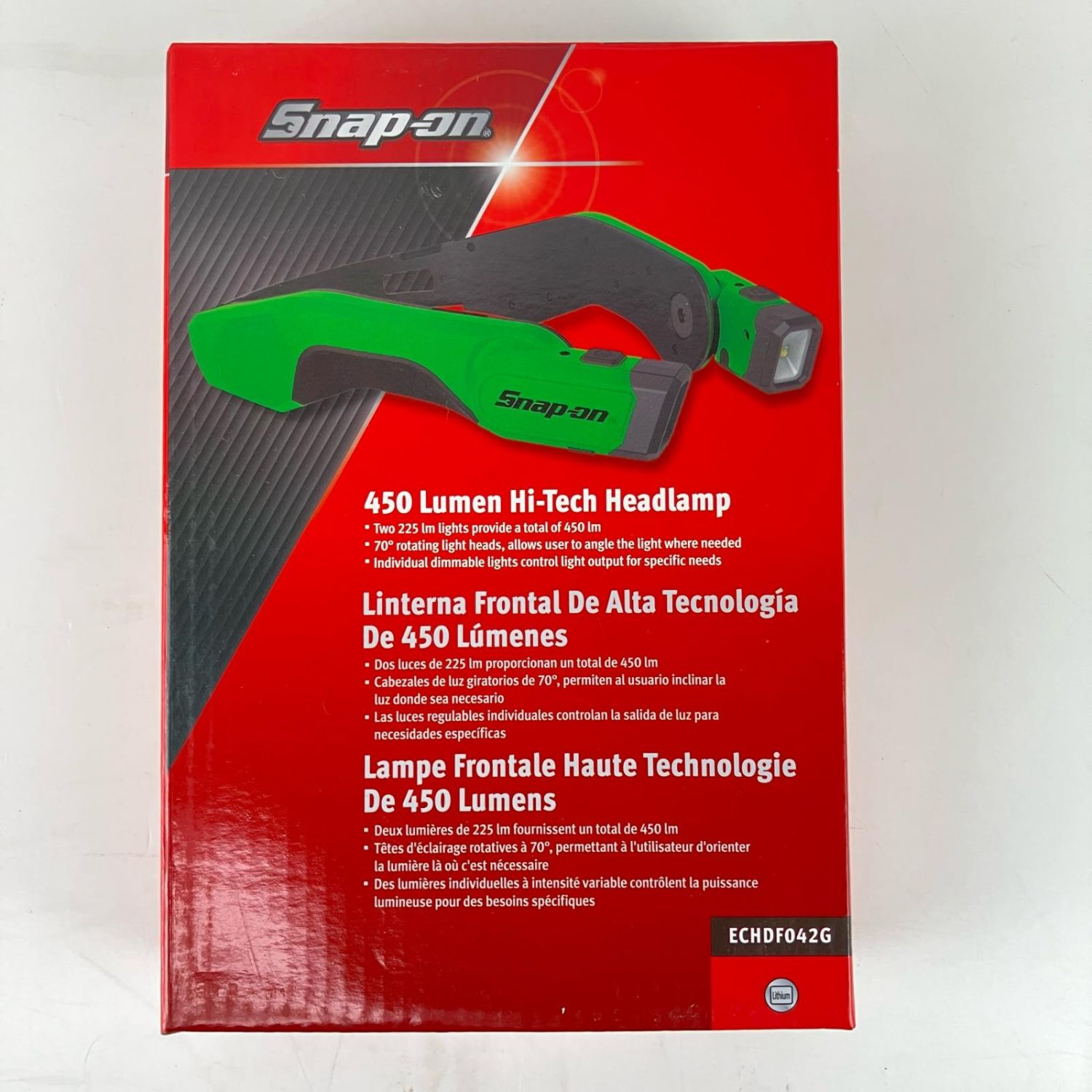 ЗЗ Snap-on スナップオン 450ルーメン ヘッドライト USBケーブル付 ECHDF042G 黄緑