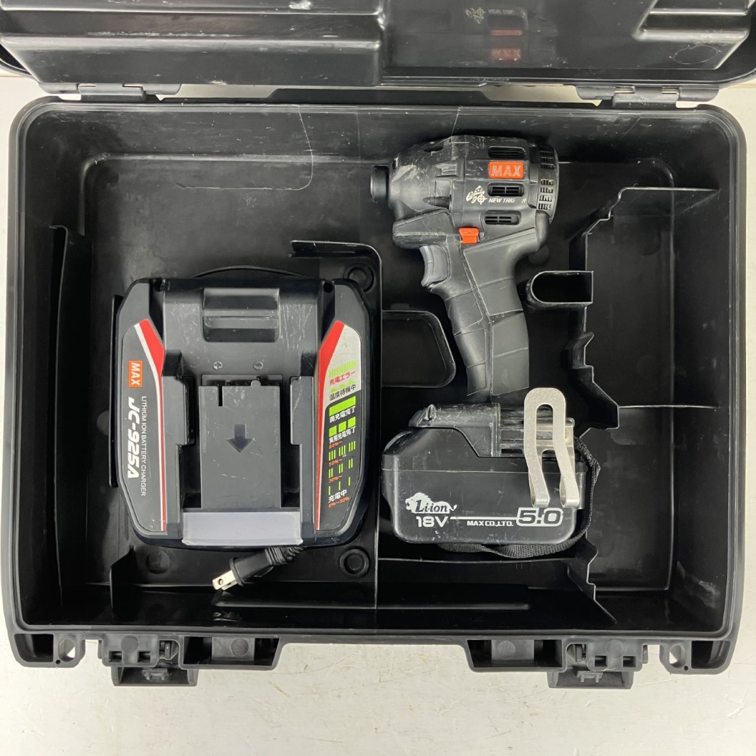 【商品名】中古 MAX マックス 18v 充電式インパクトドライバ バッテリーx1 充電器 ケース付 PJ-ID153 ブラック Cランク
