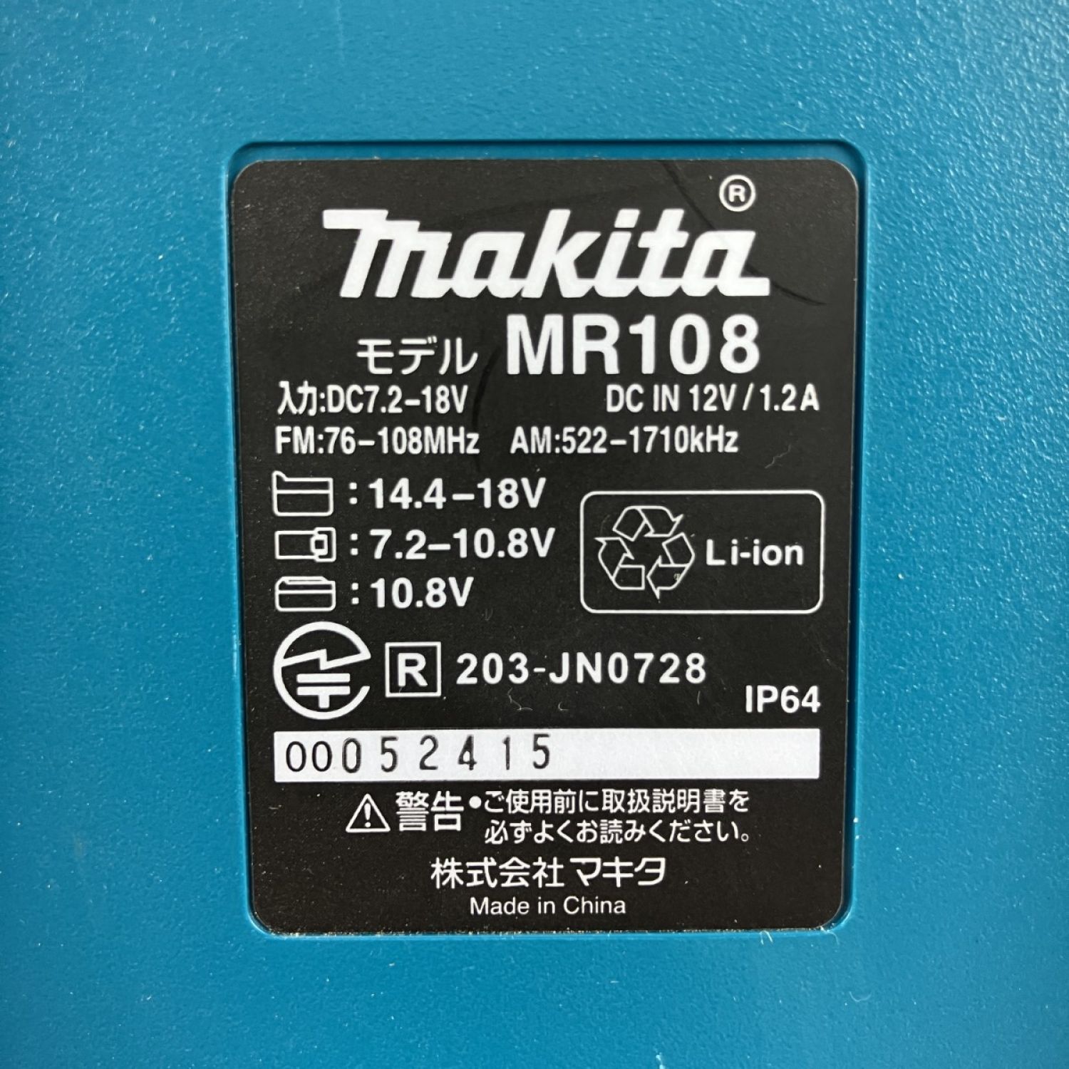 ЗЗ MAKITA マキタ 14.4v/18v 充電式ラジオ ※バッテリー、充電器無し MR108 ブルー