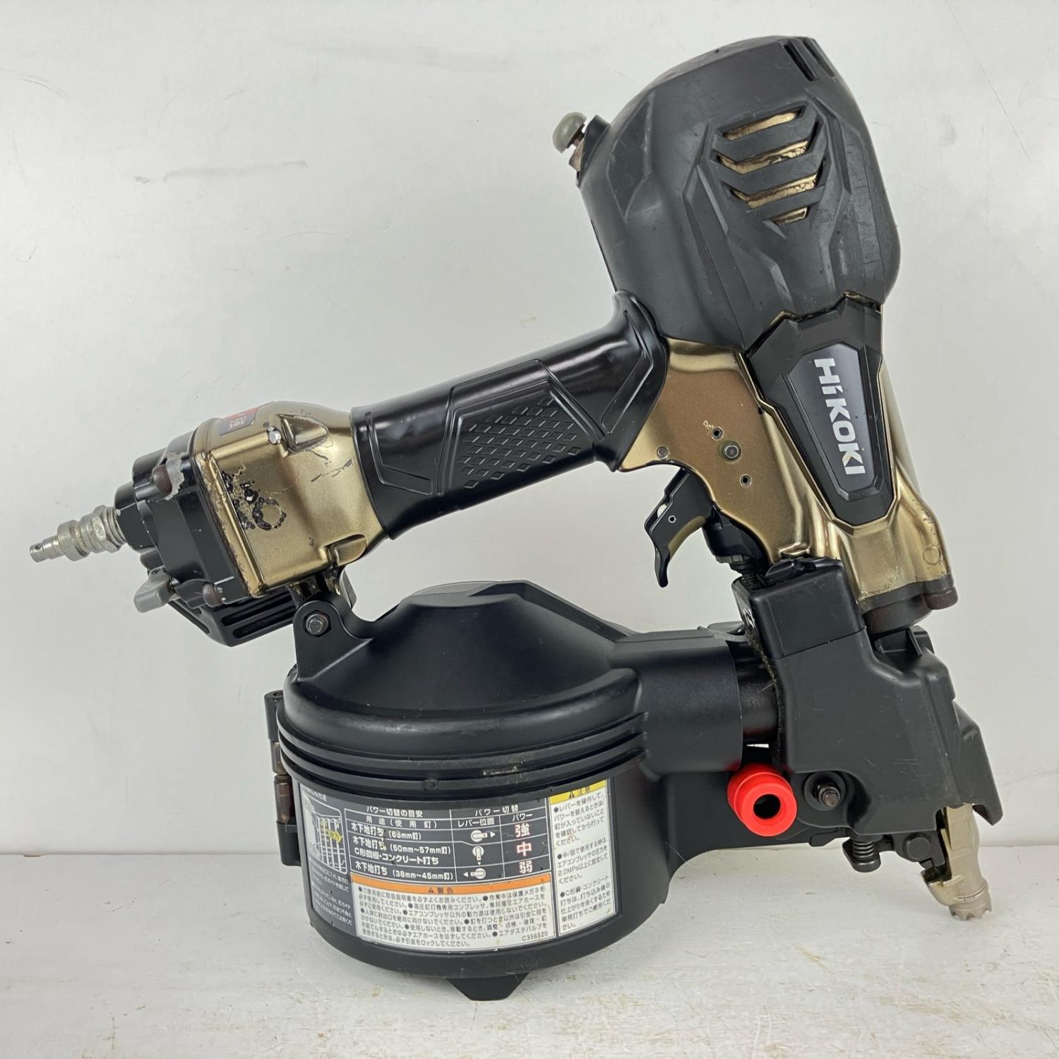 【商品名】中古 HiKOKI ハイコーキ 65mm 高圧 ロール釘打機 本体のみ NV65HR2 ゴールド×ブラック Cランク