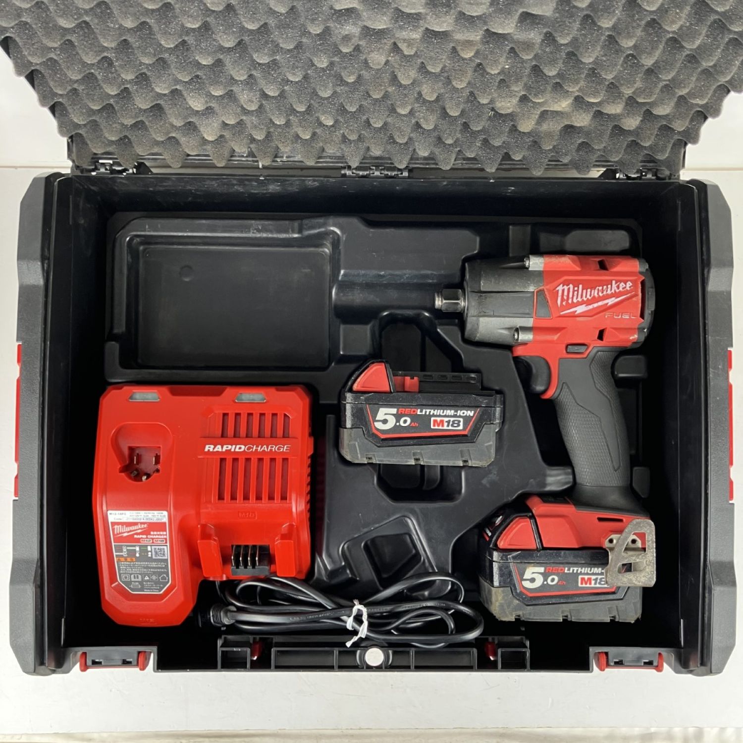 【商品名】中古 Milwaukee 18v 12.7mm インパクトレンチ バッテリーx2 充電器 ケース付 M18 FMTIW2F12 Cランク
