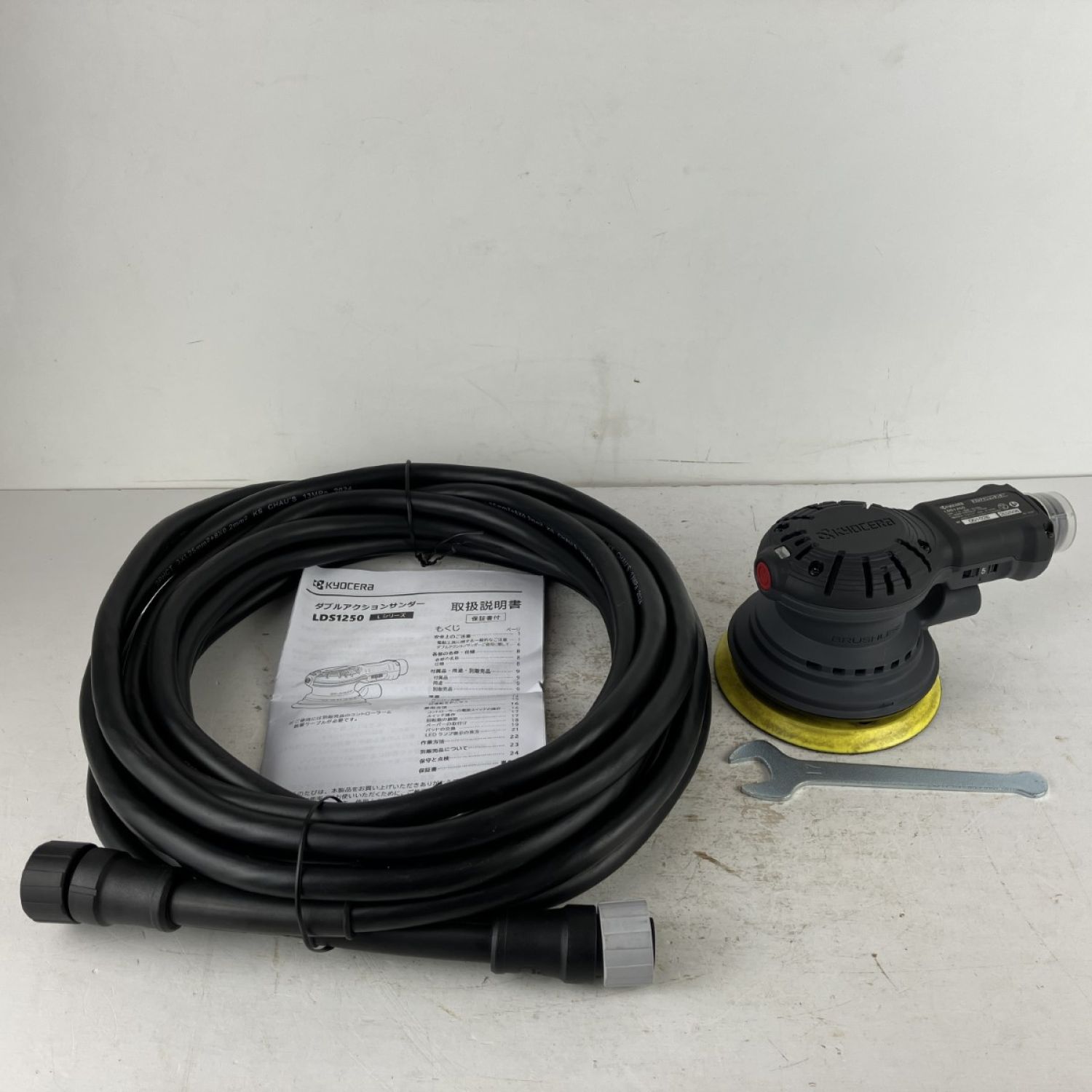 【商品名】中古 KYOCERA キョウセラ 100v 125mm ダブルアクションサンダー 脱着ケーブル(10m)付 LDS1250 ブラック Bランク