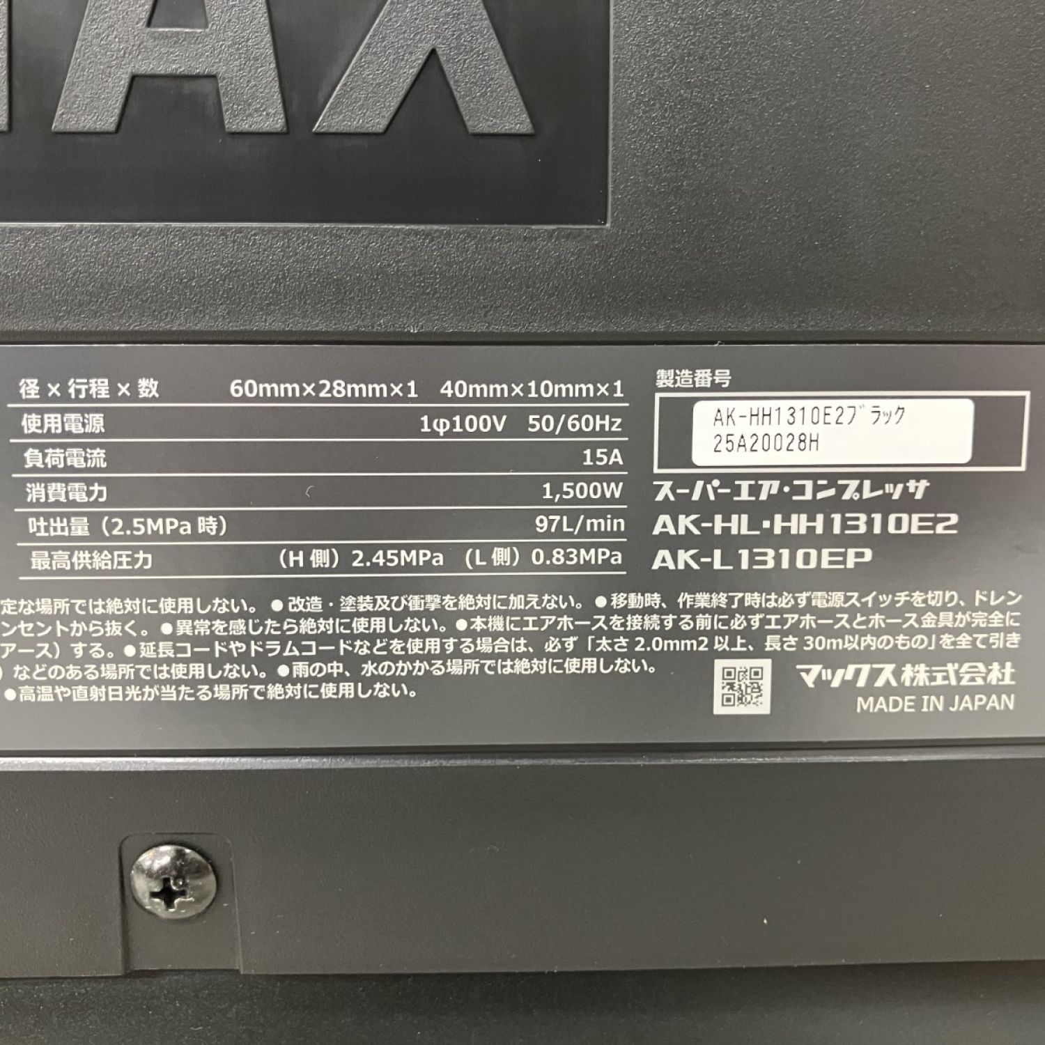 【商品名】中古 MAX マックス 100v 11L 高圧4口 スーパーエア コンプレッサ AK-HH1310E2 ブラック Sランク