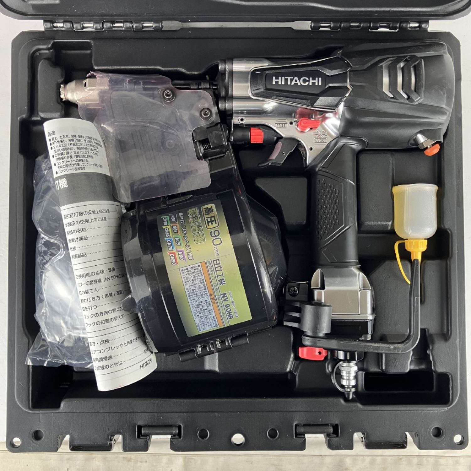 ЗЗ HITACHI 日立 90mm 高圧 ロール釘打機 ケース付 NV90HR 銀鏡