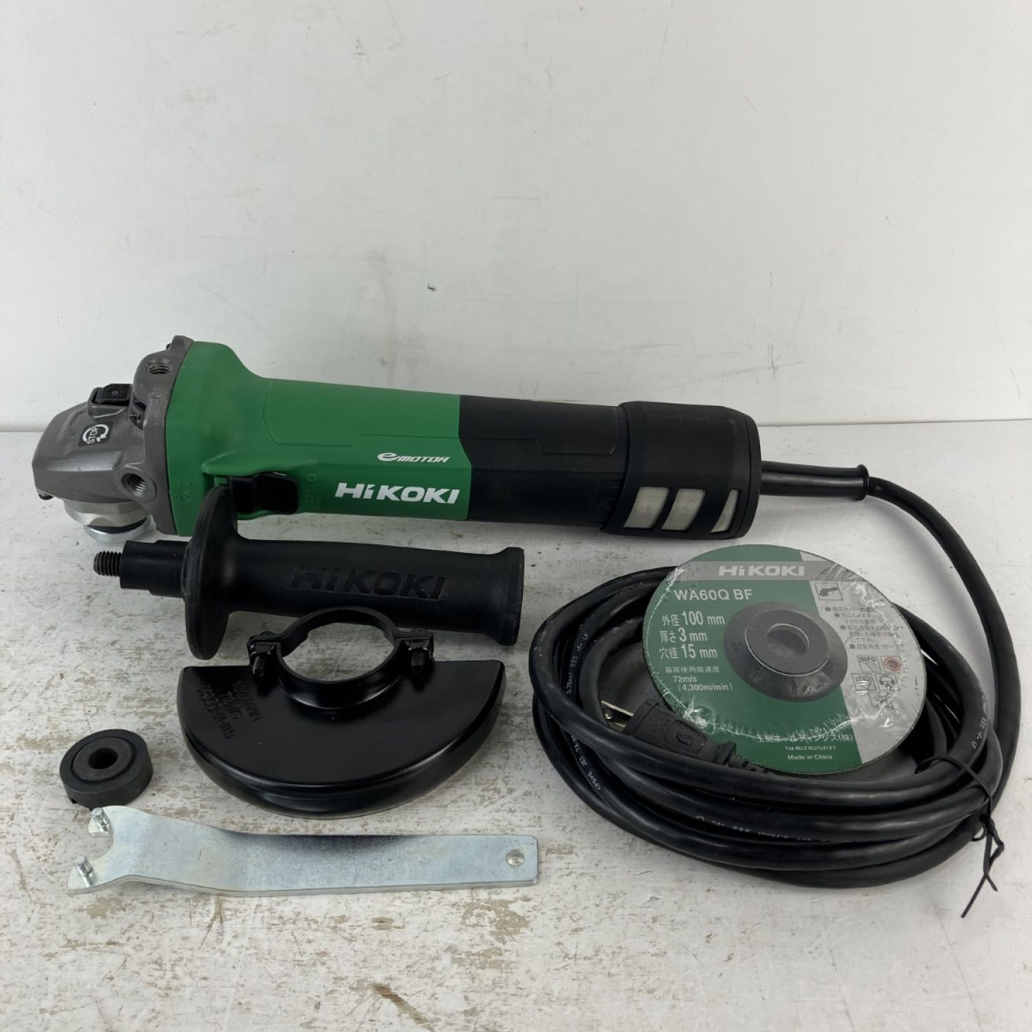 【商品名】中古 HiKOKI ハイコーキ 100v 100mm 電子ディスクグラインダ 砥石 ピンレンチ付 G10BYE2 グリーン Bランク