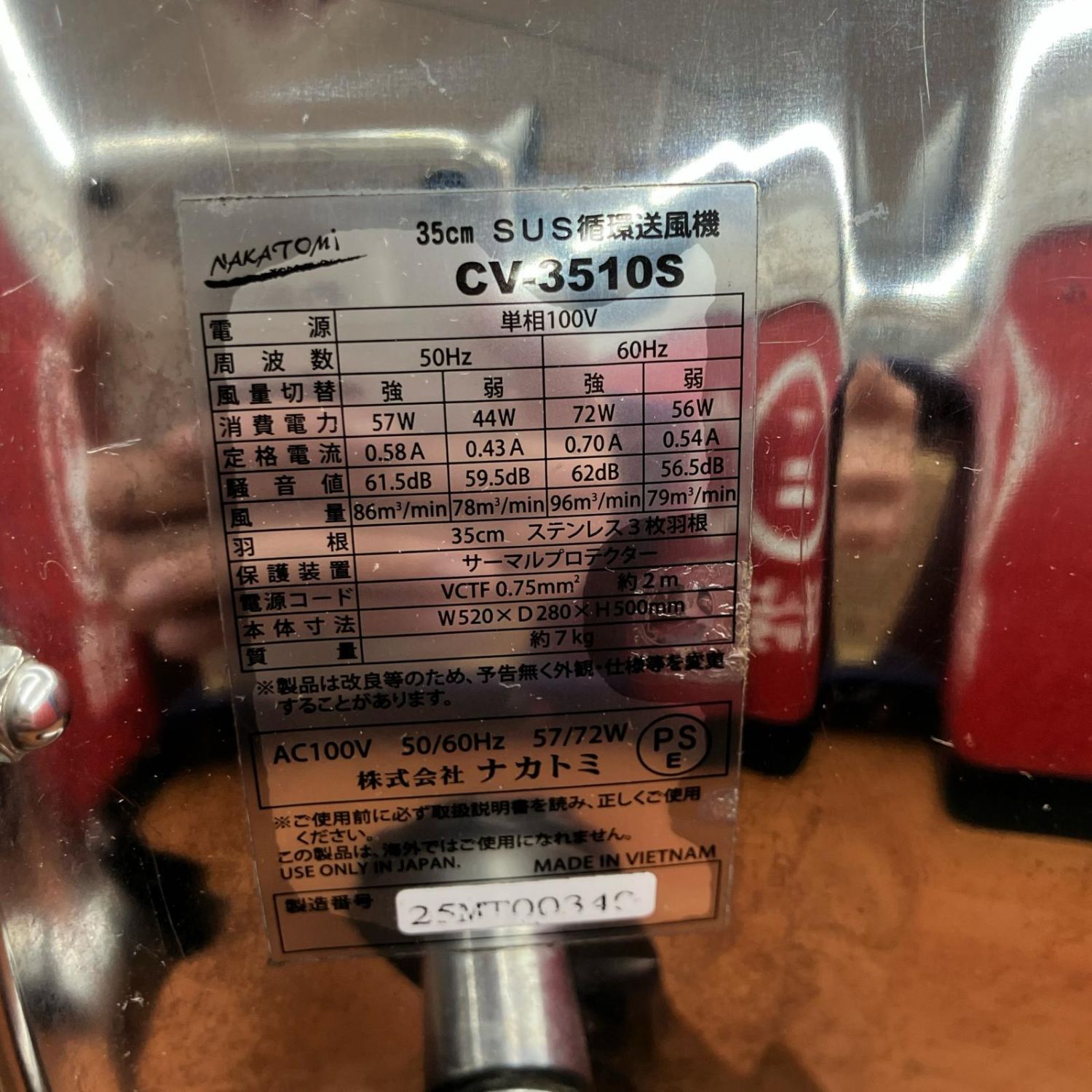 【商品名】中古 NAKATOMI 工業扇 35cm循環送風機 風太郎 CV-3510S Bランク