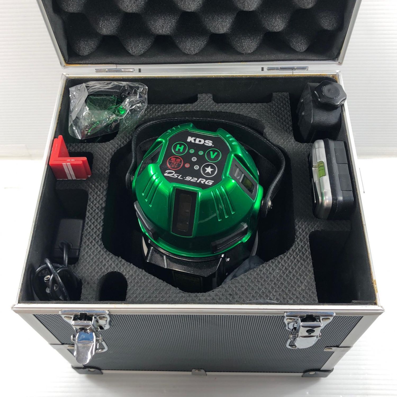 【商品名】中古 KDS レーザー墨出し器 ACアダプタ・充電池1個・ケース・受光器付 グリーンレーザー DSL-92RG グリーン Bランク