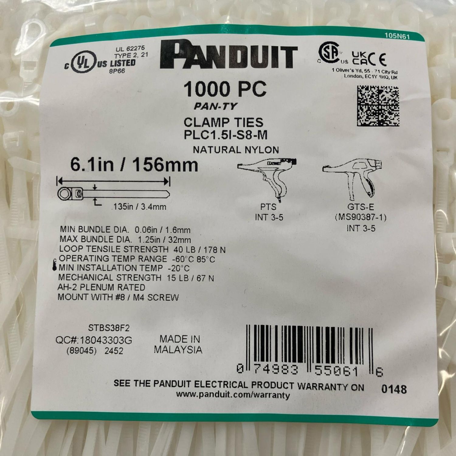 ДД PANDUIT 結束バンド 1000本 PLC1.5I-S8-M