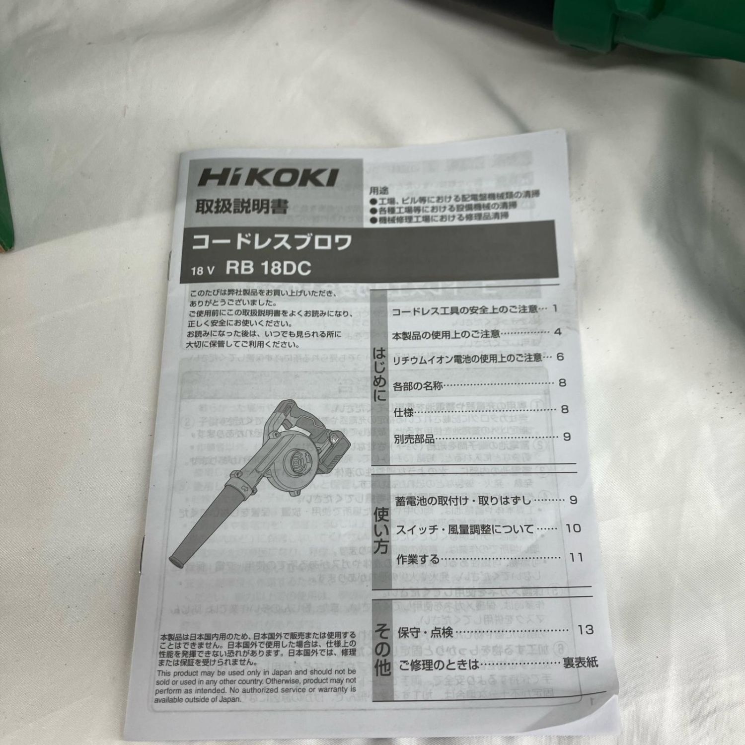 HiKOKI ハイコーキ ブロワ HiKOKI RB18DC グリーン×ブラック 程度A RB18DC グリーン×ブラック