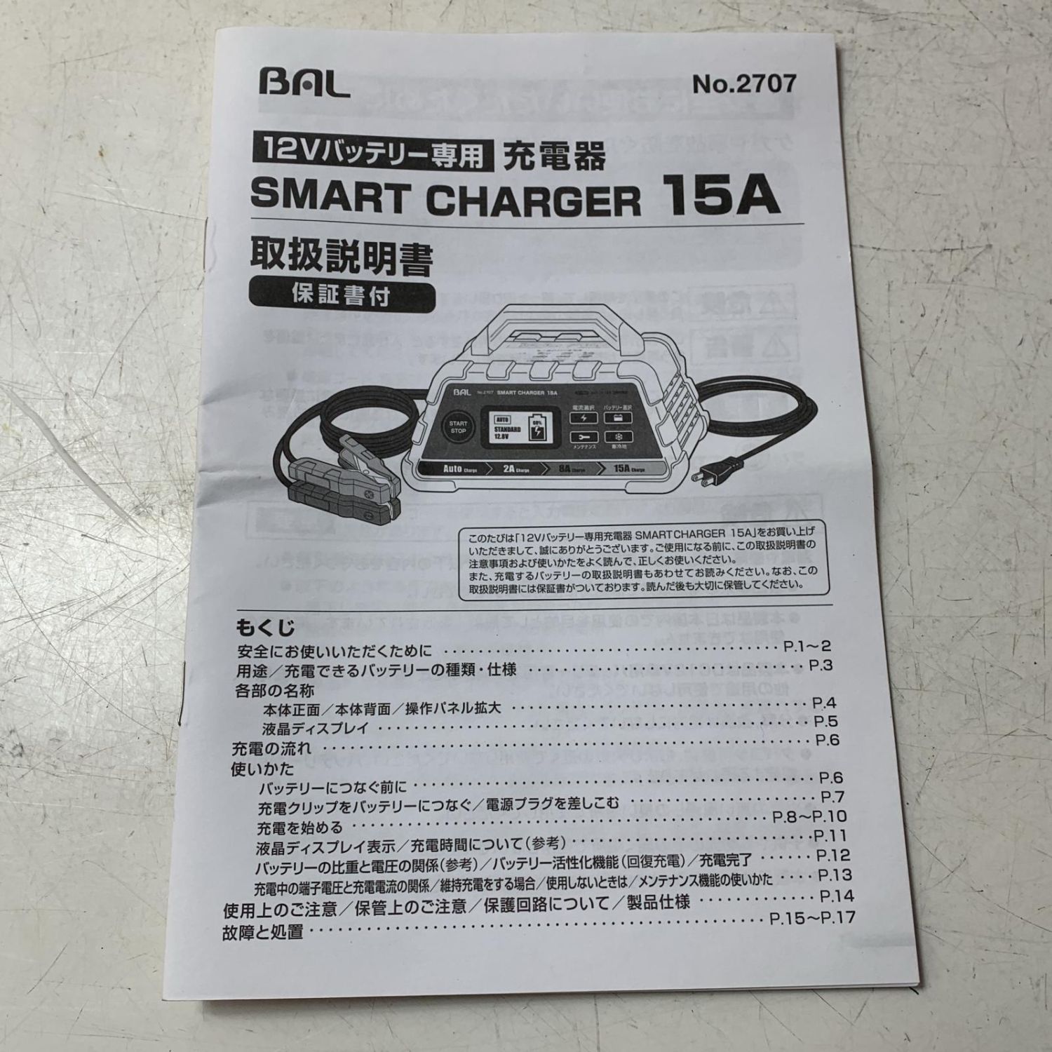 BAL バル 12vバッテリー専用 充電器15A SMART CHARGER 2707 オレンジ