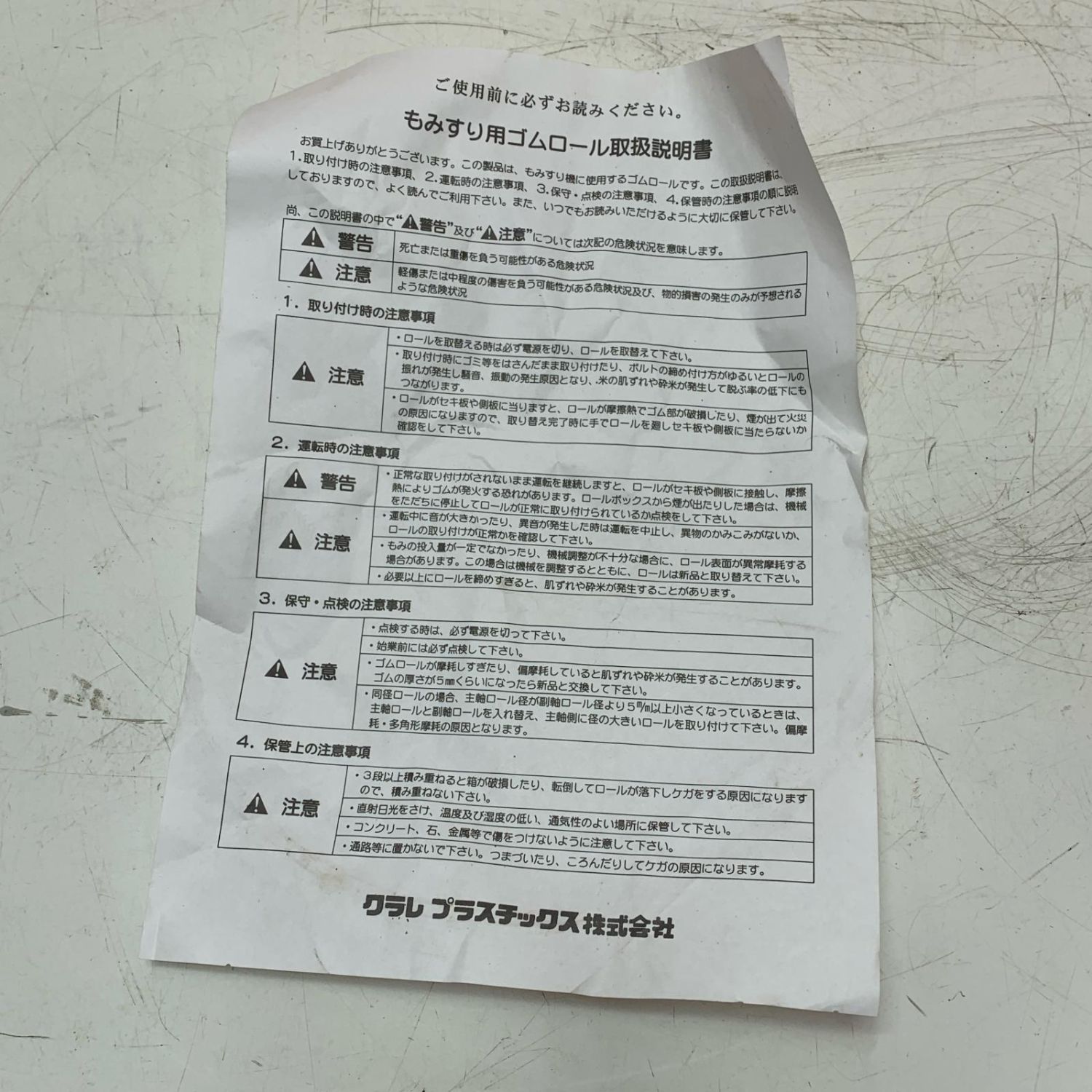 【商品名】中古 クラレプラスチック株式会社 もみすりゴムロール 統合100 Sランク