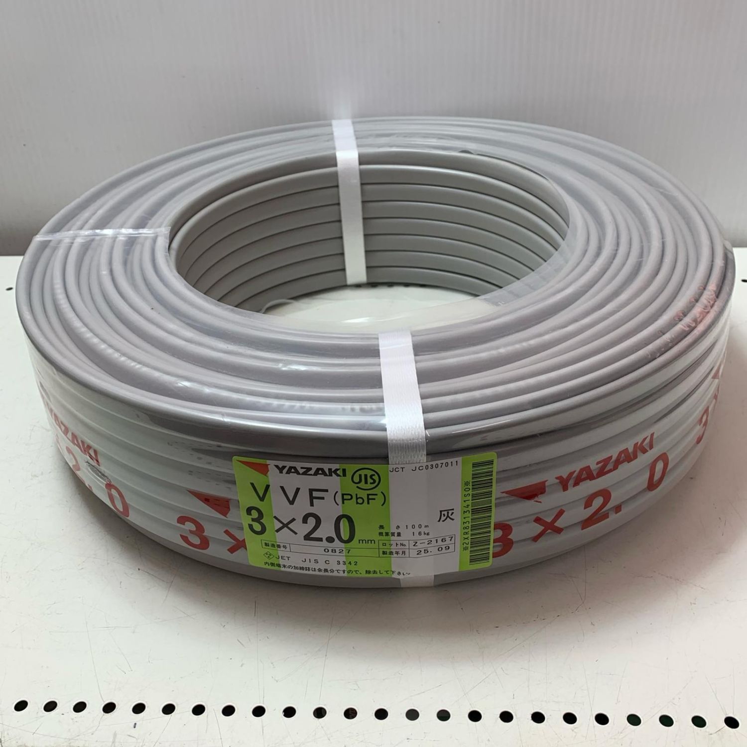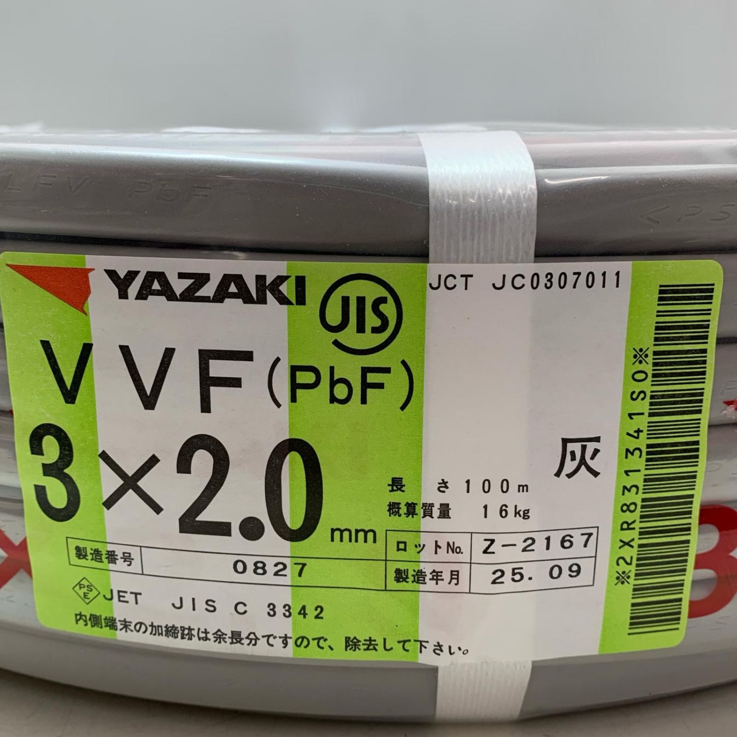 【商品名】中古 YAZAKI VVFケーブル 3X2.0 2025年9月(令和7年) Sランク