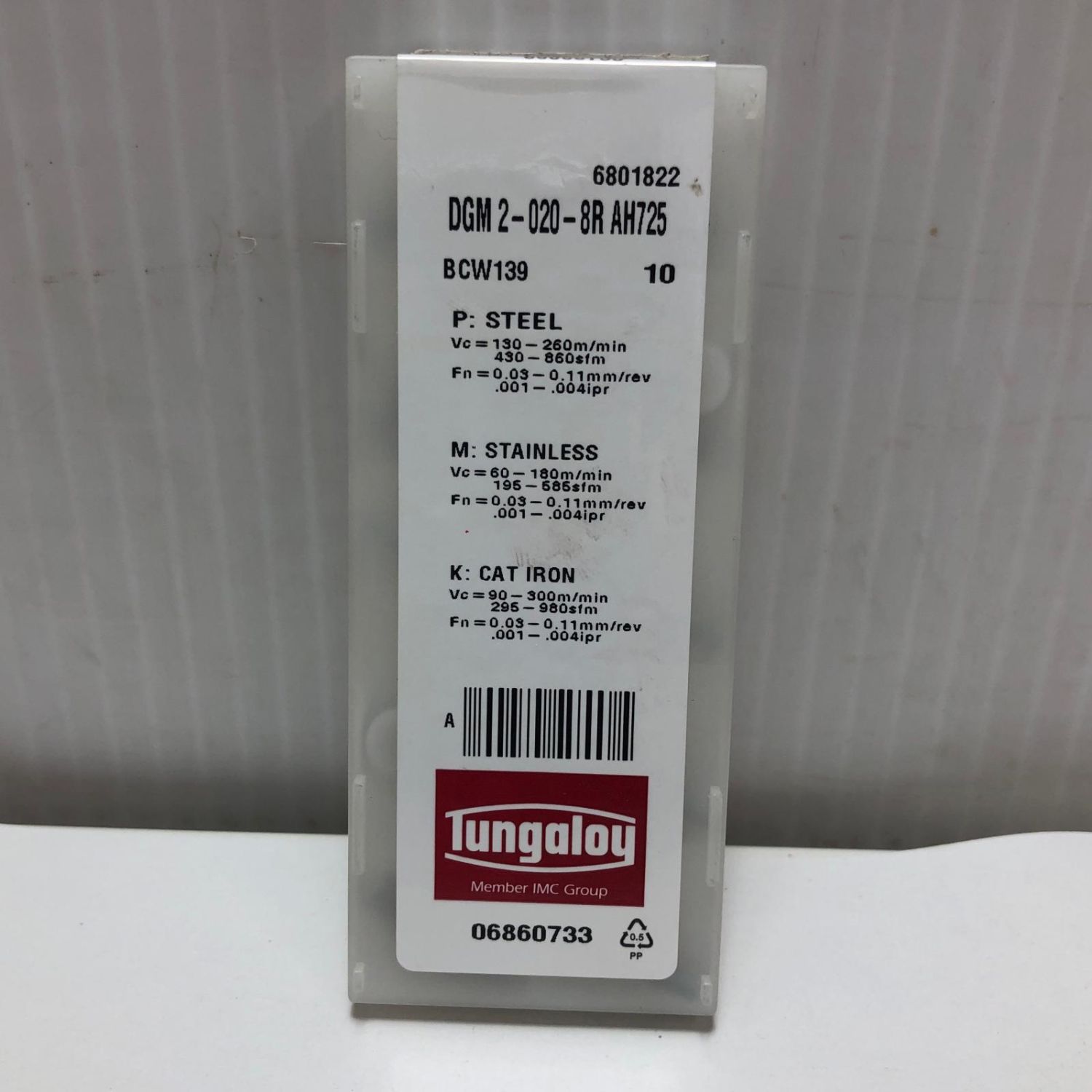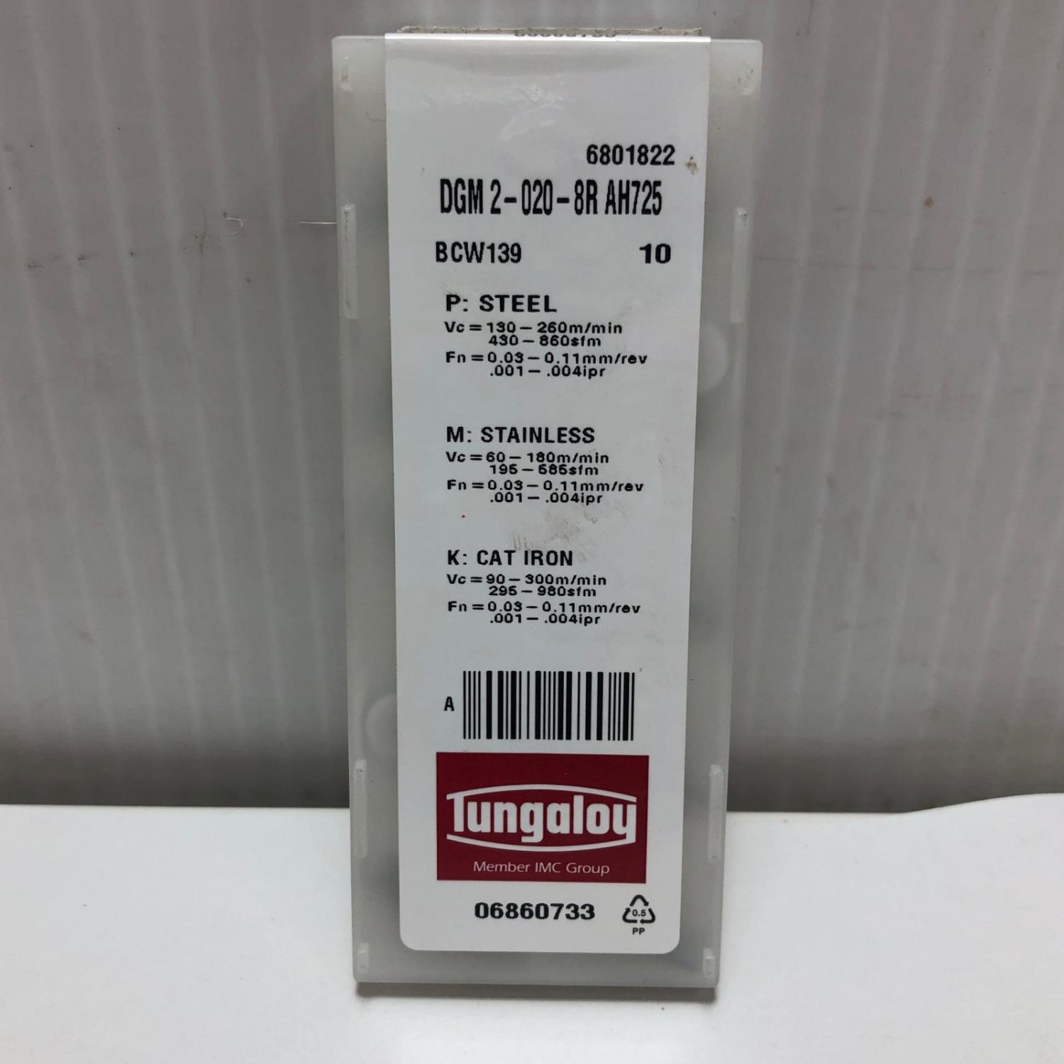 【商品名】中古 Tungaloy ねじ切りチップ DGM2-020-8R AH725 Aランク