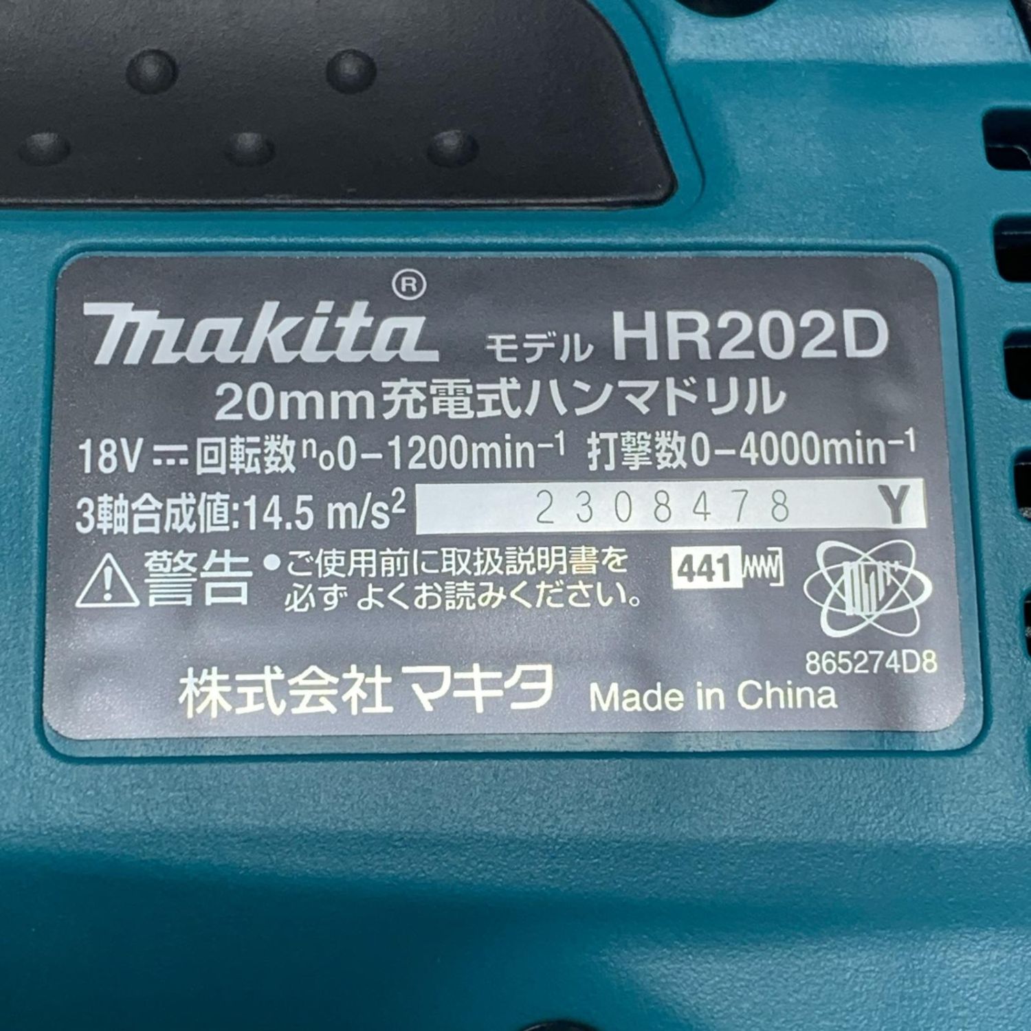 MAKITA マキタ 20mm 充電式ハンマドリル HR202D ブルー