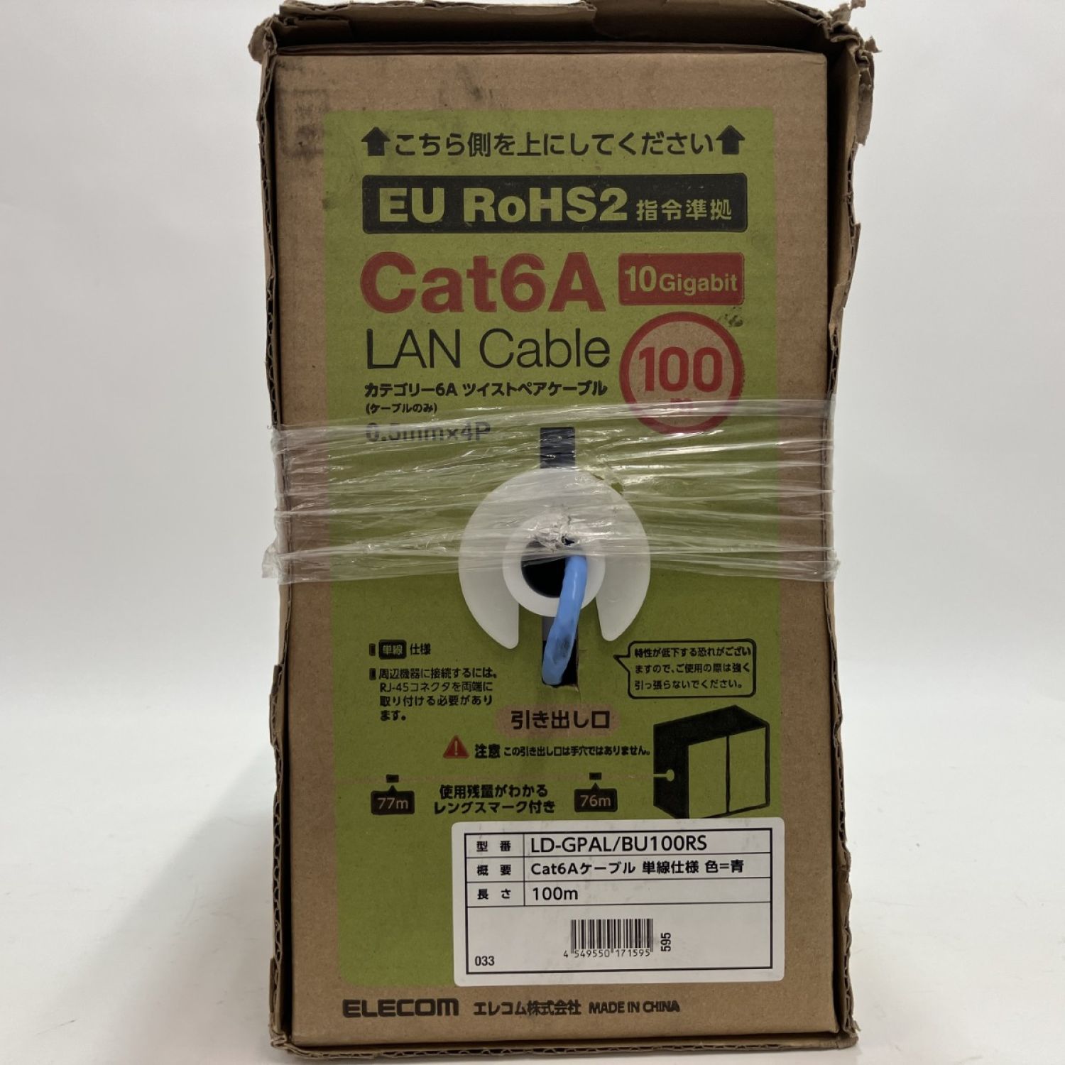 【商品名】中古 ELECOM エレコム LD-GPAL/BU100RS 100m Cat6Aケーブル 単線使用 未使用品 Sランク