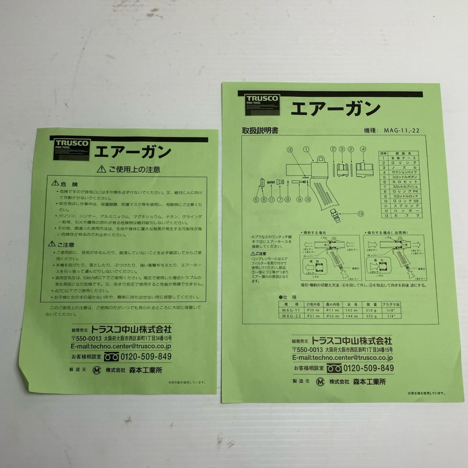 【商品名】中古 TRUSCO トラスコ エアツール エアガン ダストパック付Aセット 最小内径22mm MAG-22B Sランク