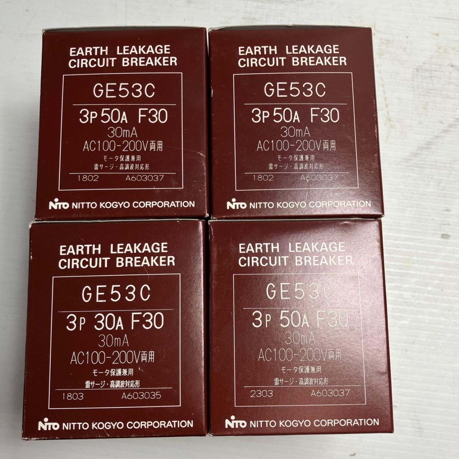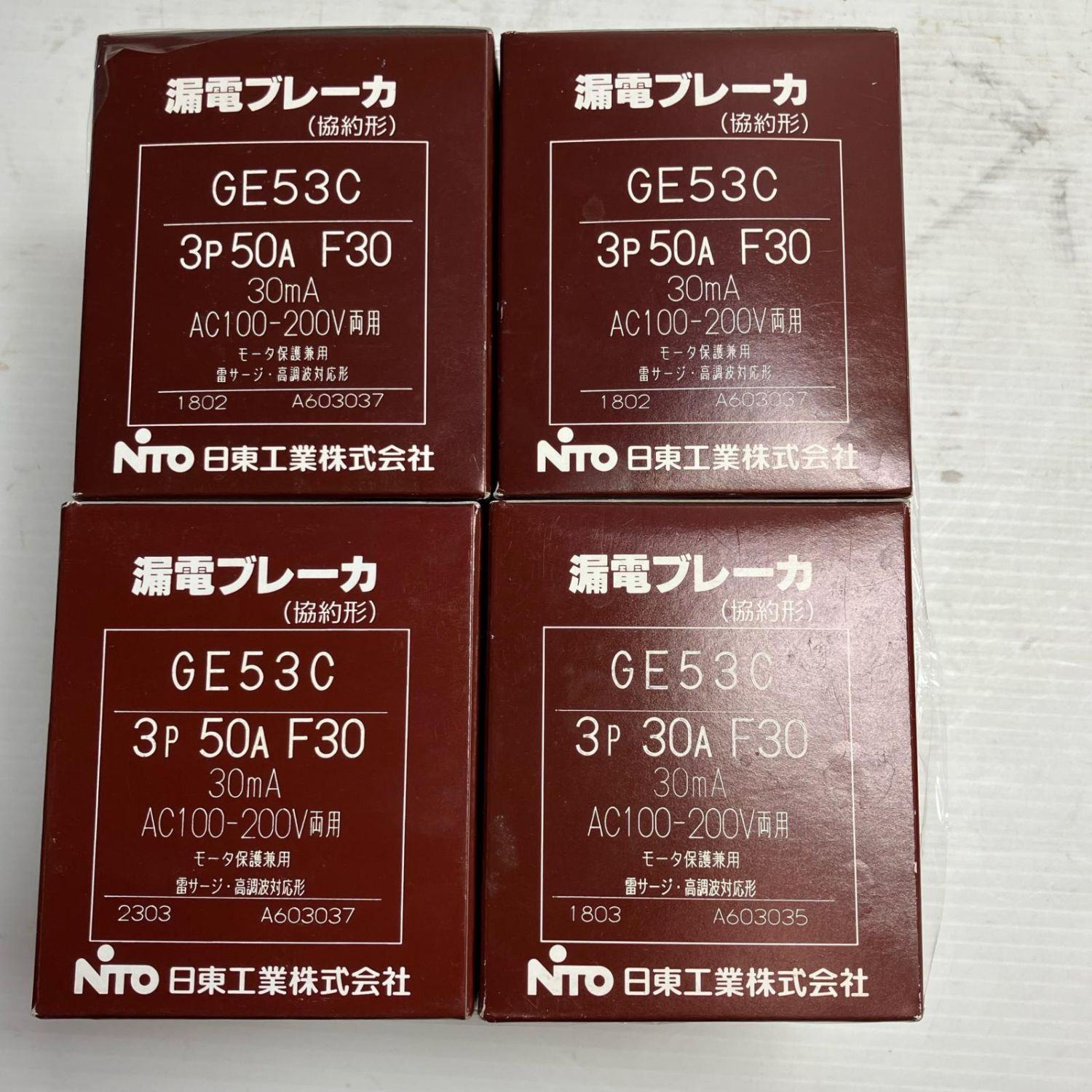 【商品名】中古 NITTO 工具 CE53C 3P50A F30型 漏電ブレーカー4個セット 1802x2 1803x1 2303x1 Nランク