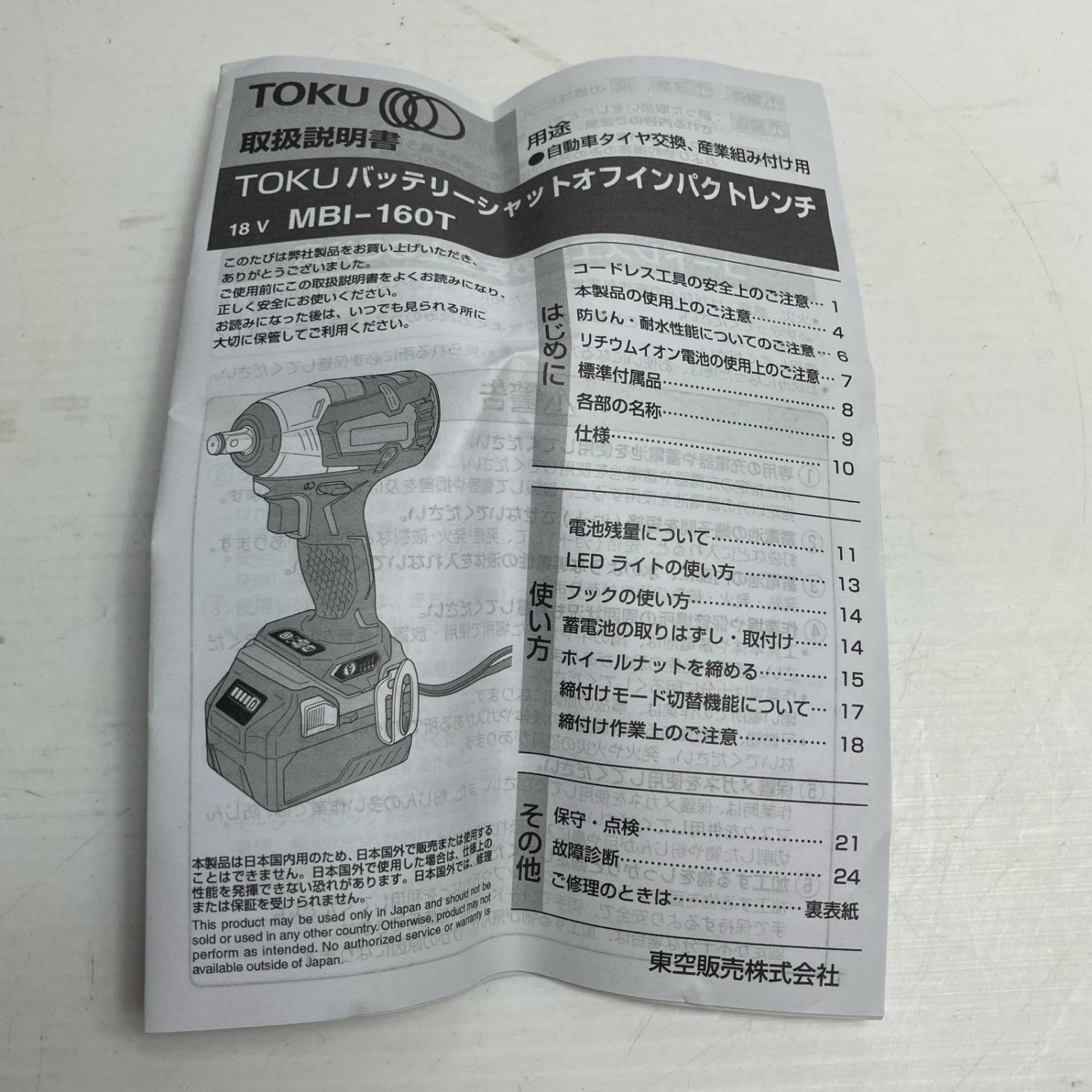 TOKU 充電式シャットオフインパクトレンチ MBI-160T