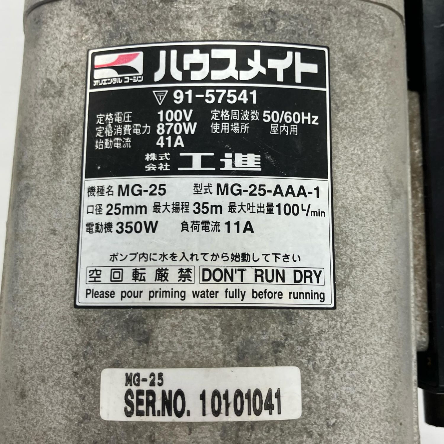 【商品名】中古 KOSHIN モーターポンプ MG-25-AAA-1 Cランク