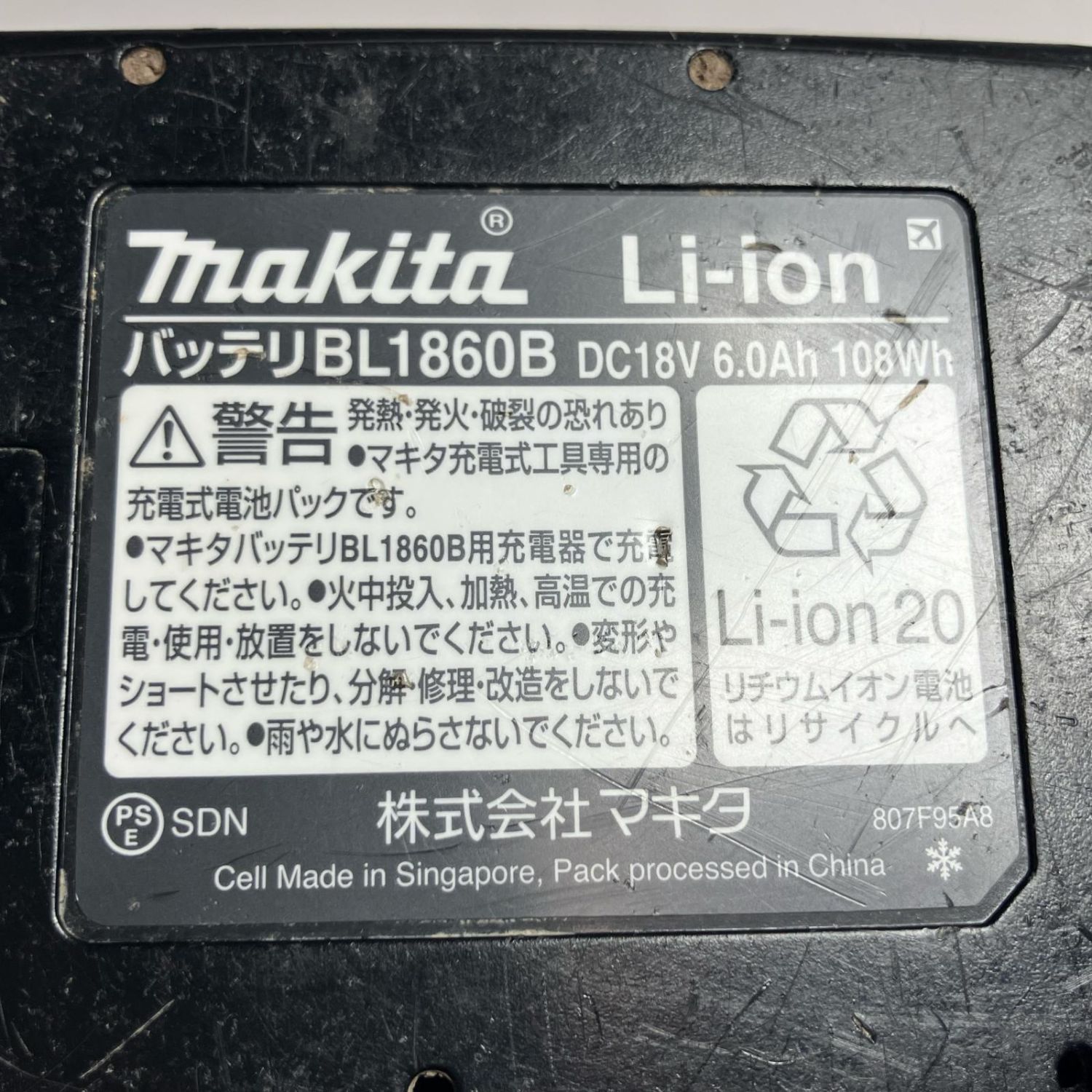 付属のバッテリーはPSE適合性製品です。