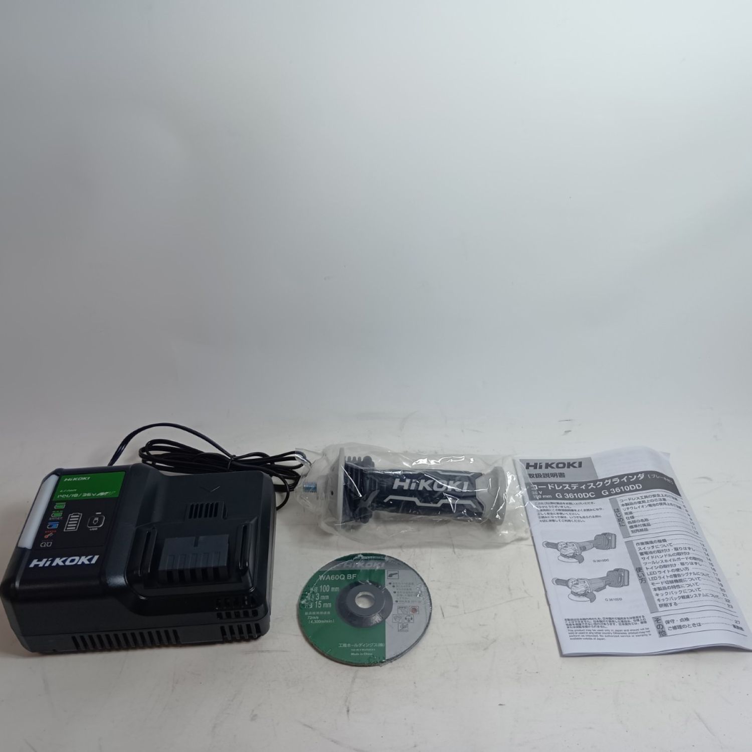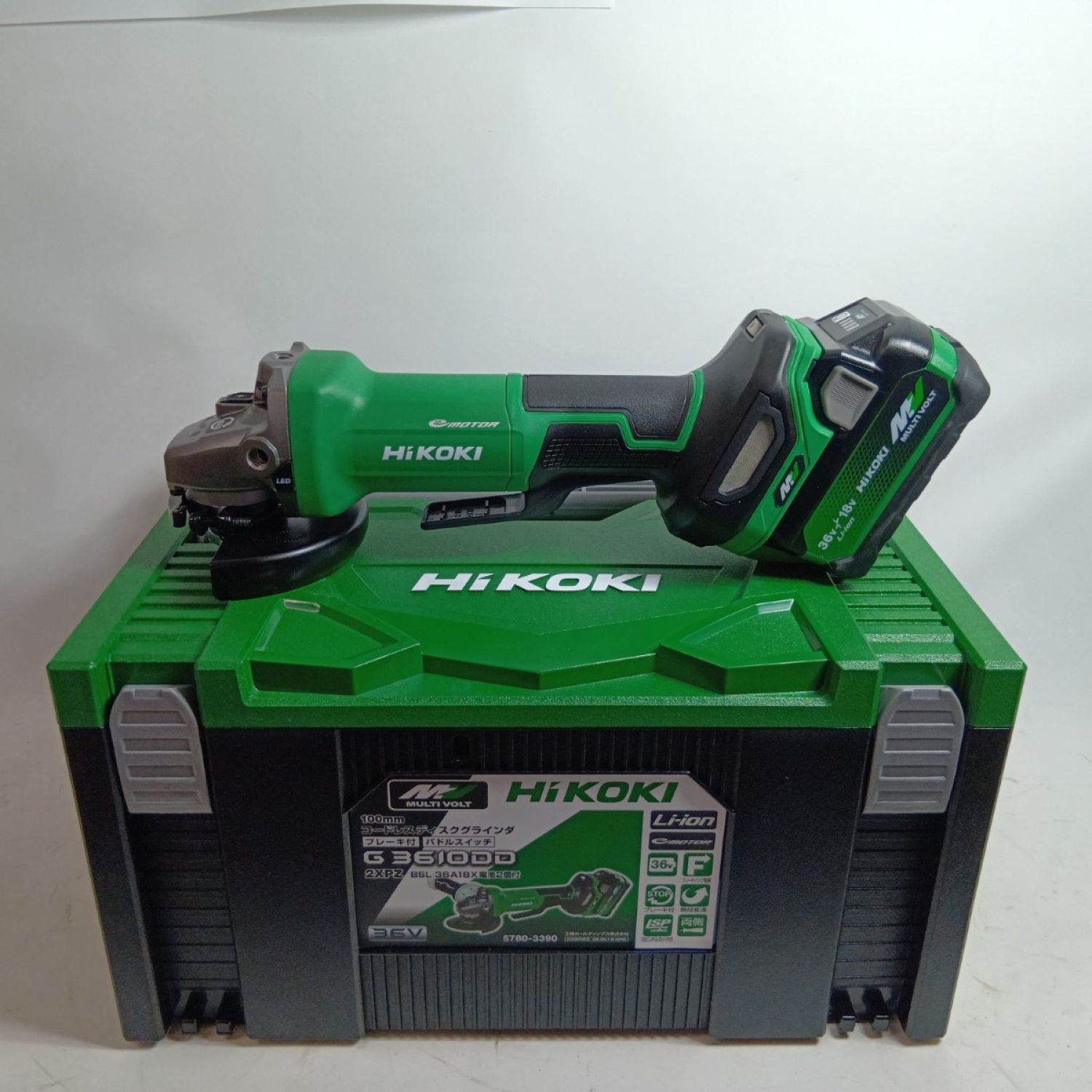 HiKOKI ハイコーキ ディスクグラインダー G3610DD グリーン 未使用品(S) 充電器・充電池2個・ケース付 コードレス式 36v J950575