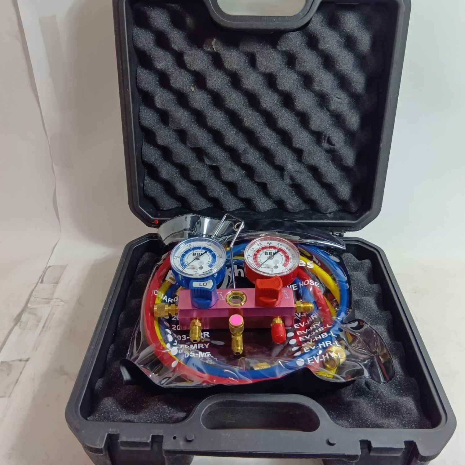 BBKテクノロジーズ マニホールド R410A/R32 ボールバルブ式 程度B ホース3本、ケース付