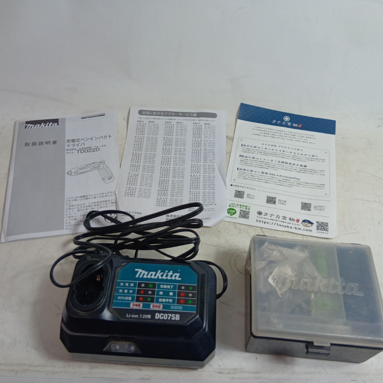 MAKITA マキタ インパクトドライバ TD022D ブルー 程度C 充電器・充電池2個・ケース付 コードレス式 7.2v 1.5Ah 不明 キズ・ヨゴレ有