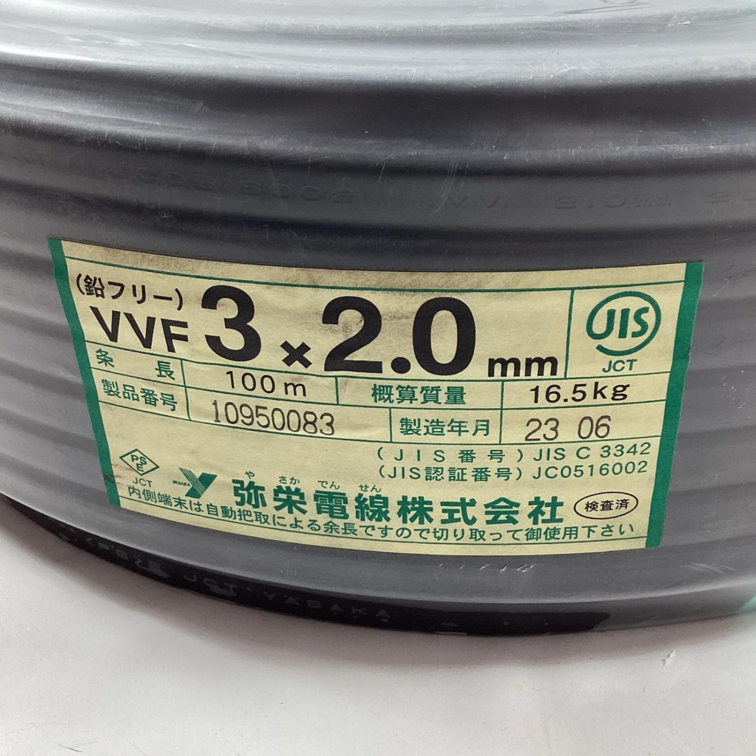 【商品名】中古 弥栄電線 VVFケーブル 3芯 2.0mm×100m 2023年6月製造 Sランク