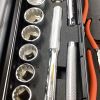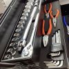 ソケット、ラチェットハンドル、ナットスピンナハンドル、エクステンションバー、ユニバーサルジョイント、ギアレンチ、両口めがねレンチ、両口スパナ、貫通角軸ドライバー、モンキレンチ、コンビネーションプライヤ、ウォーターポンププライヤ、ペンチ、ラジオペンチ、ニッパ、ロングボールポイント六角棒レンチ、コンビネーションハンマー、ツールケース