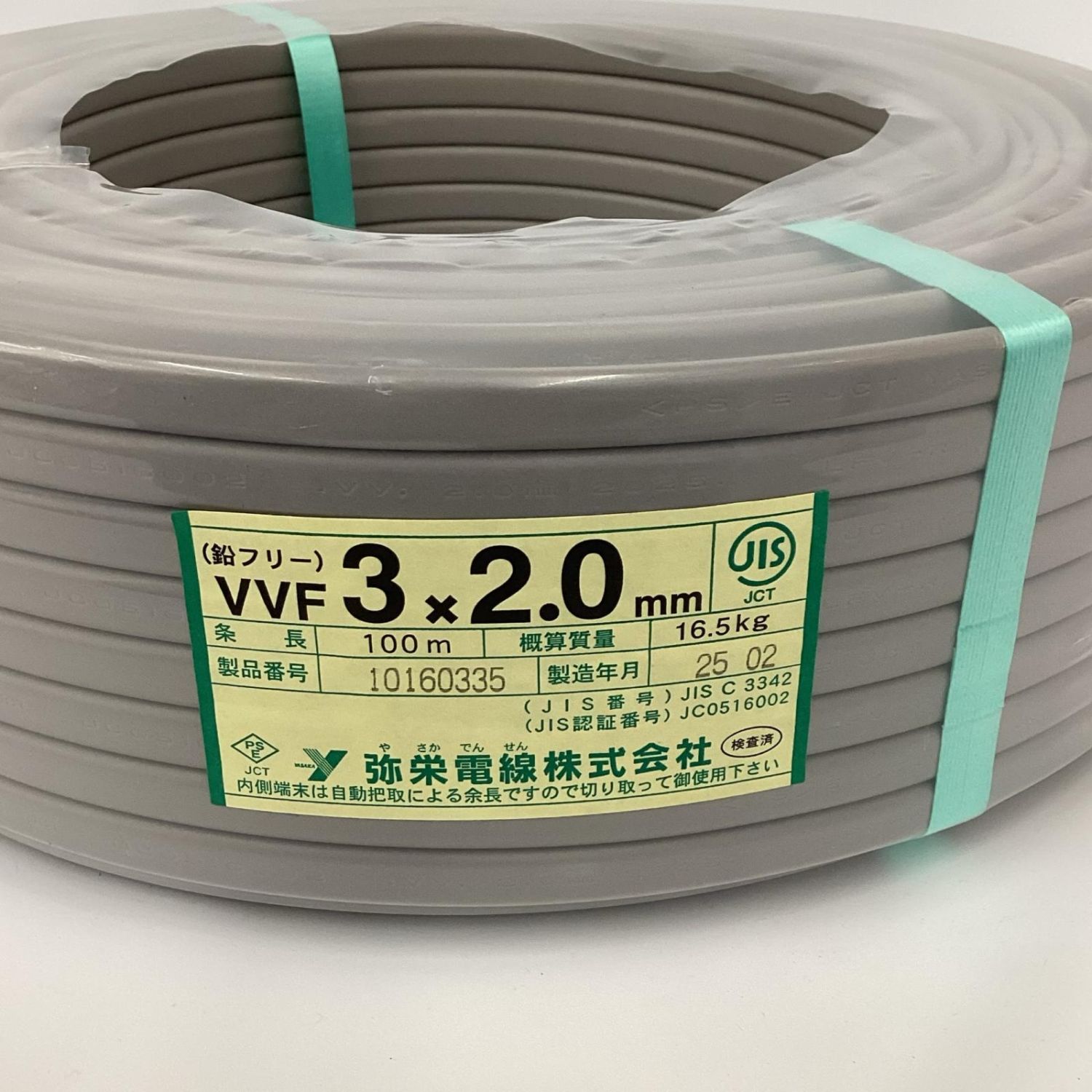 弥栄電線 VVFケーブル 3芯 2.0mm×100m 製造年月2025年2月