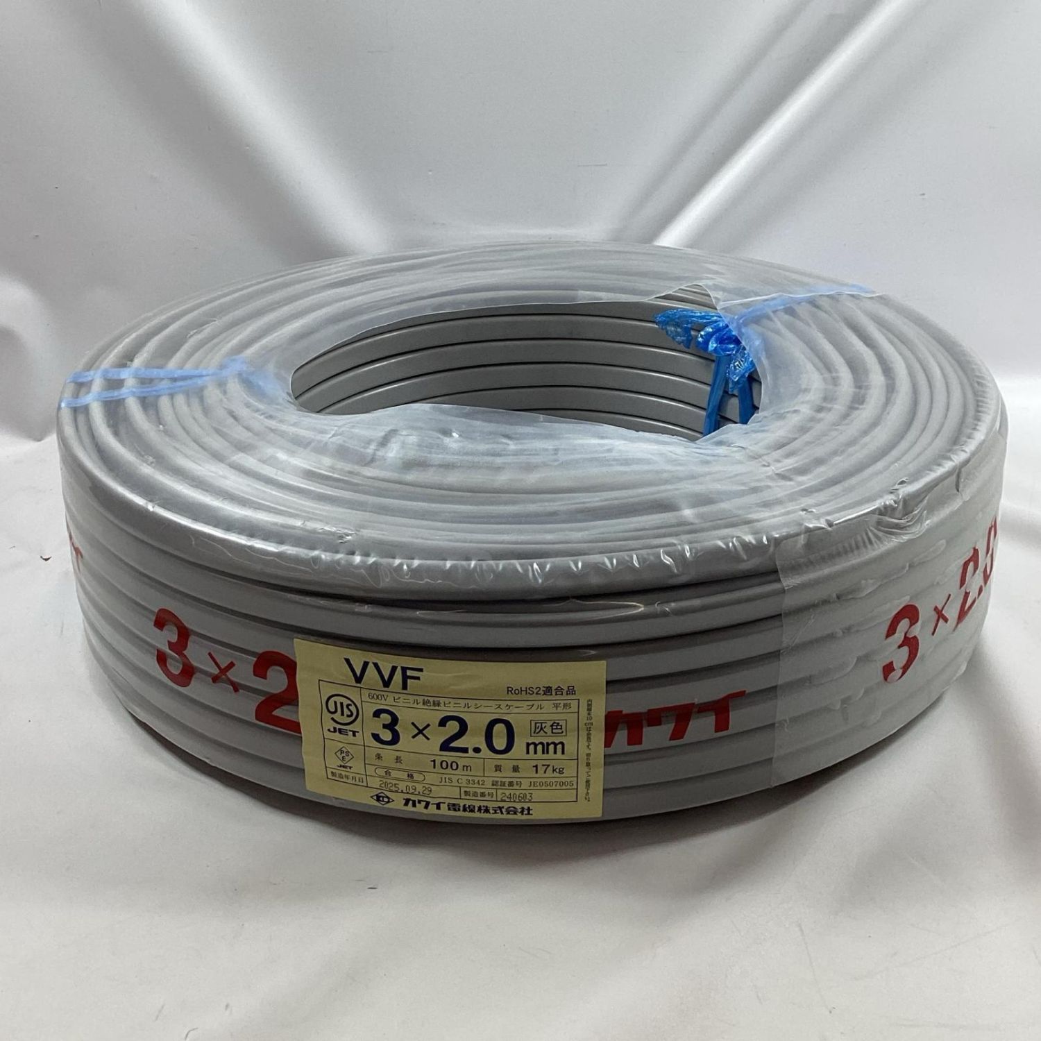 カワイ VVFケーブル 3芯 2.0mm×100m 2025年9月製造