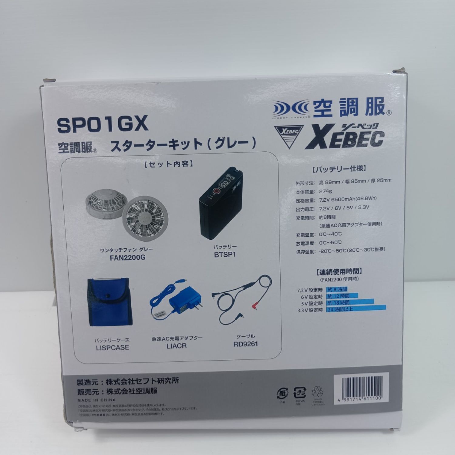 【商品名】中古 XEBEG 空調服 スターターキット SP01GX Sランク