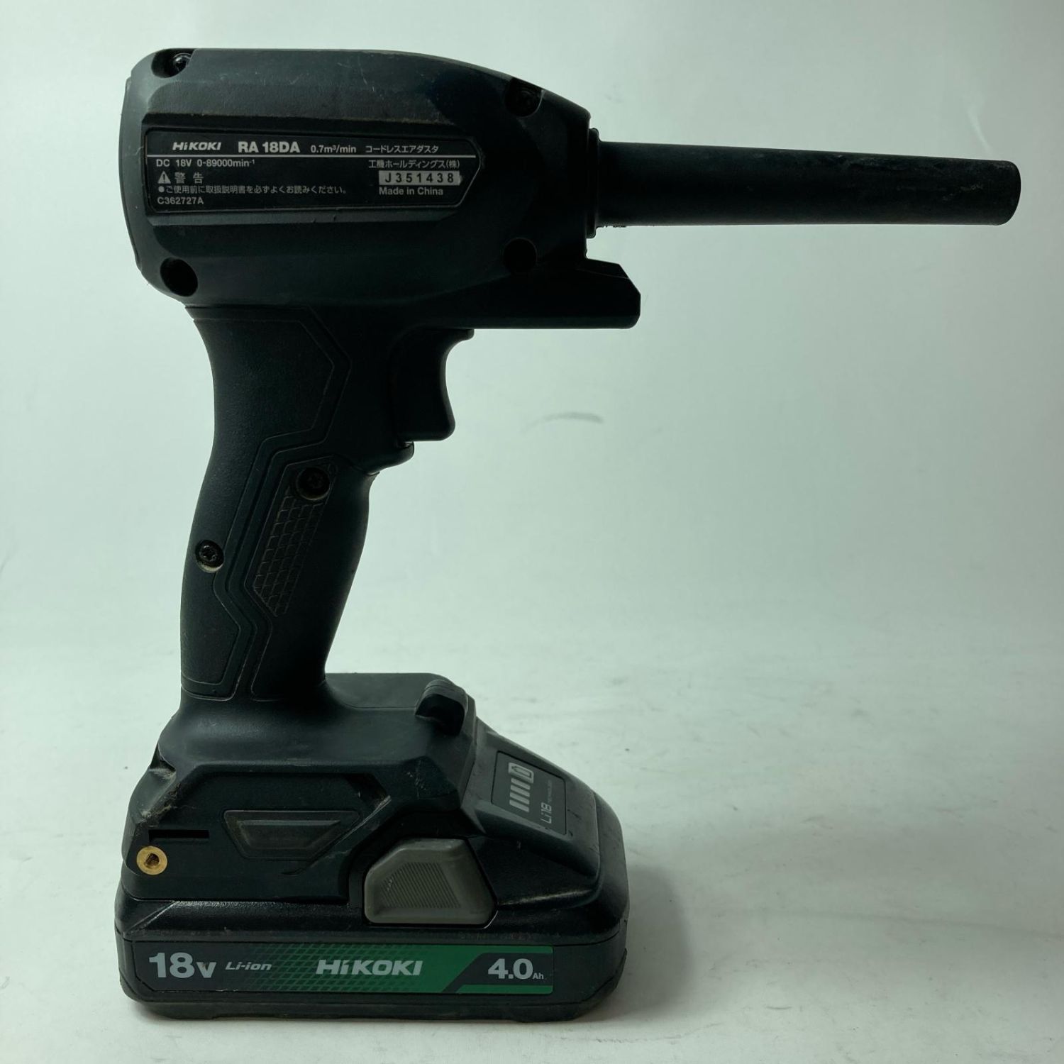 【商品名】中古 HiKOKI ハイコーキ エアダスター 充電池1個付 コードレス式 18v RA18DA ブラック 本体のみ Cランク