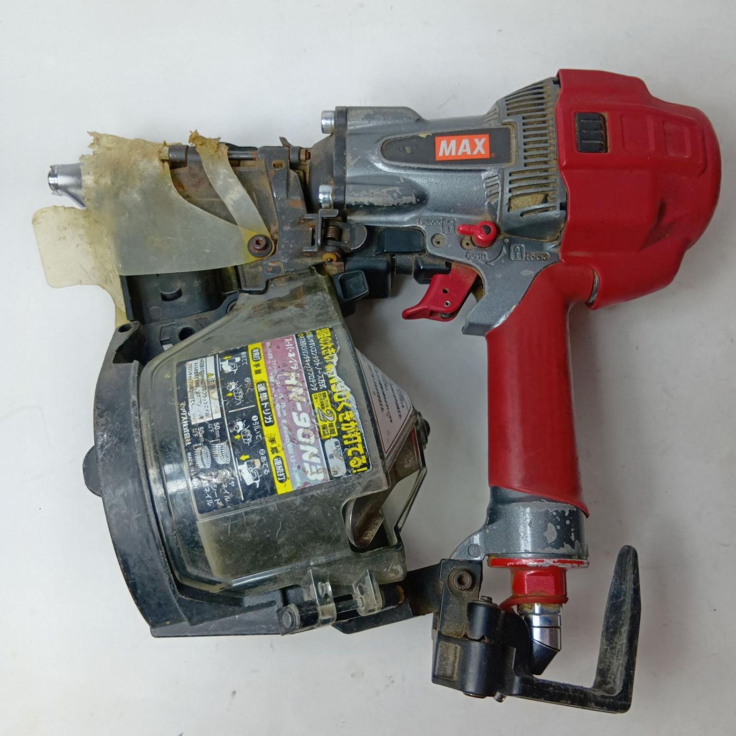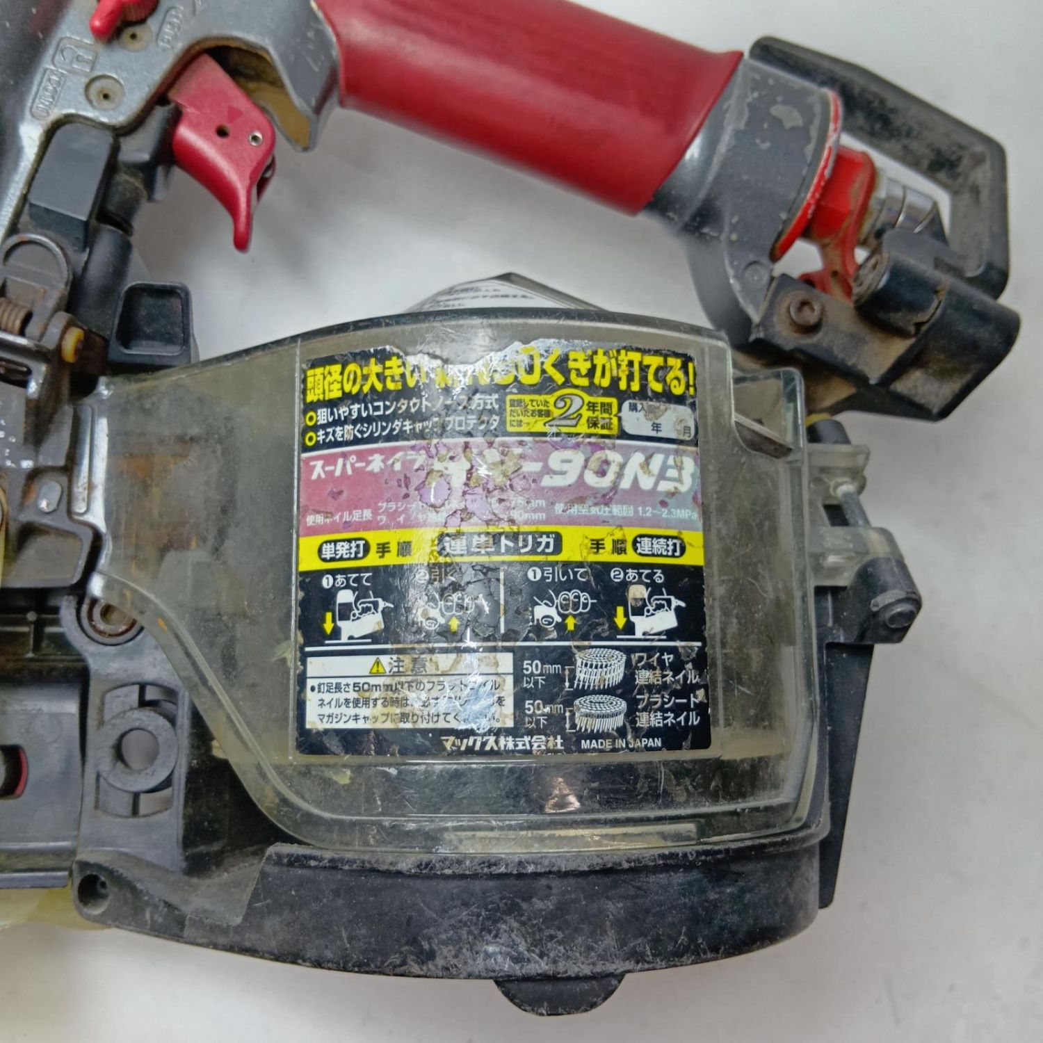 【商品名】中古 MAX マックス 高圧コイルネイラ エアくぎ打ち機 HN-90N3 レッド ケース付 Cランク