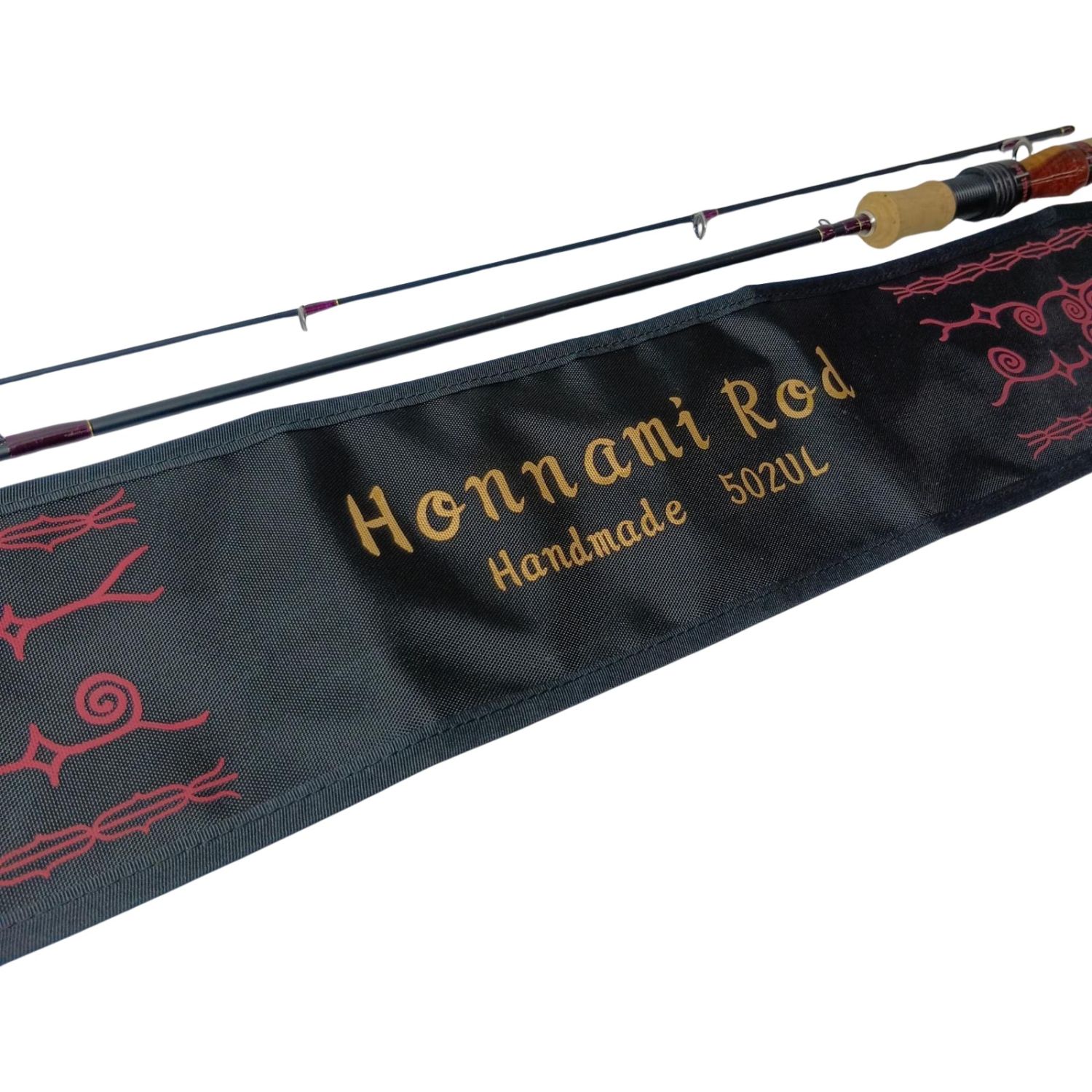 ホンナミスピリット トラウトロッド ホンナミロッド502UL リールシート「花梨紅白」/スレッド「パープル」 ハンドメイドロッド