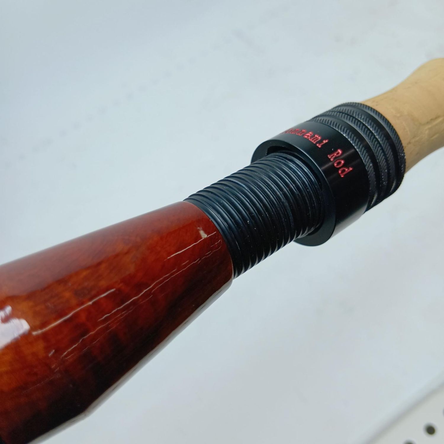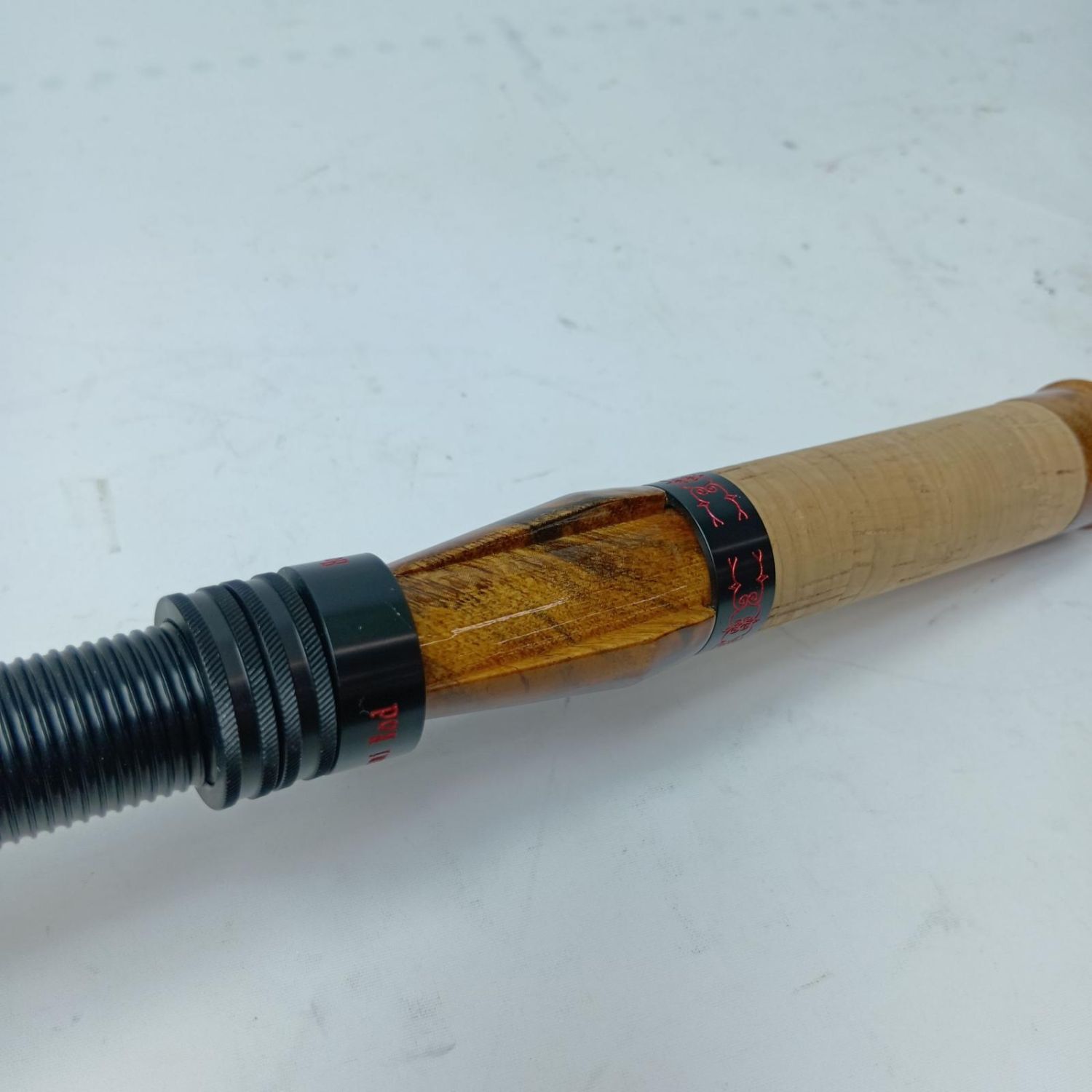 【商品名】中古 ホンナミスピリット トラウトロッド ホンナミロッド502UL リールシート「花梨紅白」/スレッド「パープル」 ハンドメイドロッド Bランク