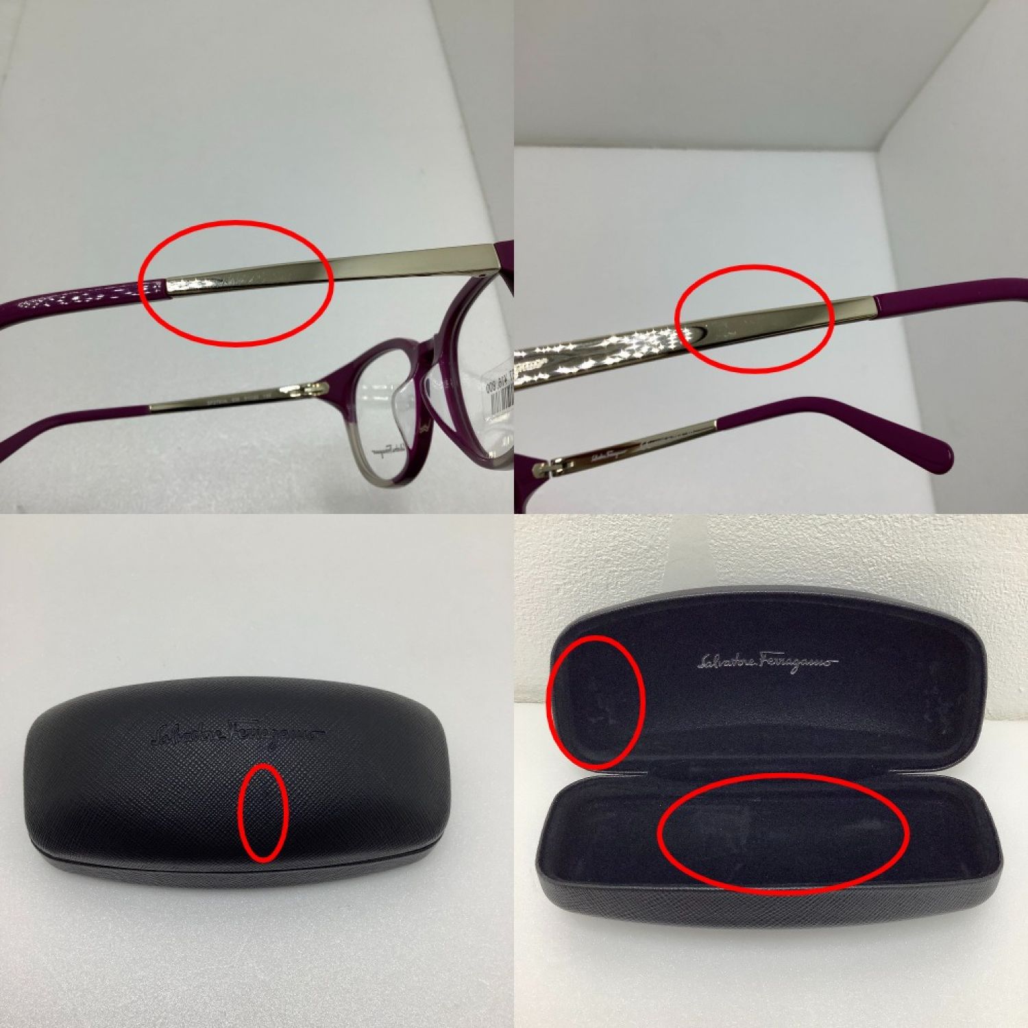 デモレンズ、ハードケース、メガネ本体のテンプルに傷ございます。