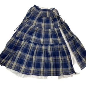 PINK HOUSE ピンクハウス レディース ピコフリル ペチコート付き ロングスカート 脇リボン タータンチェック ブルー Bランク
