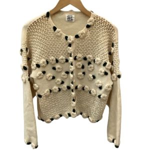 HENRI-LUC CHAPUIS アンリ・リュ・シャピュイ Vintage カーディガン SIZE 9号 花 バラ アイボリー Bランク