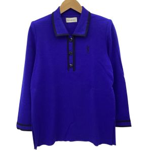 Yves Saint Laurent イブサンローラン レディース 長袖 ポロシャツ SIZE M ブルー Bランク