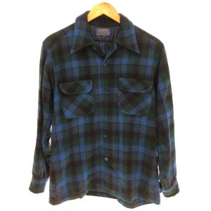 70s PENDLETON シャツ 開襟シャツ SIZE M ウール チェック 古着 ブルー Cランク