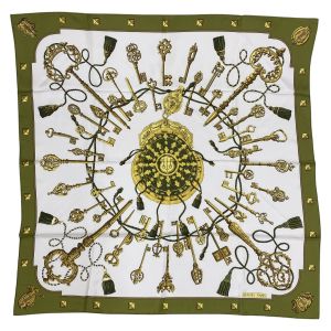 HERMES エルメス カレ90 鍵柄 大判シルクスカーフ オリーブ Bランク